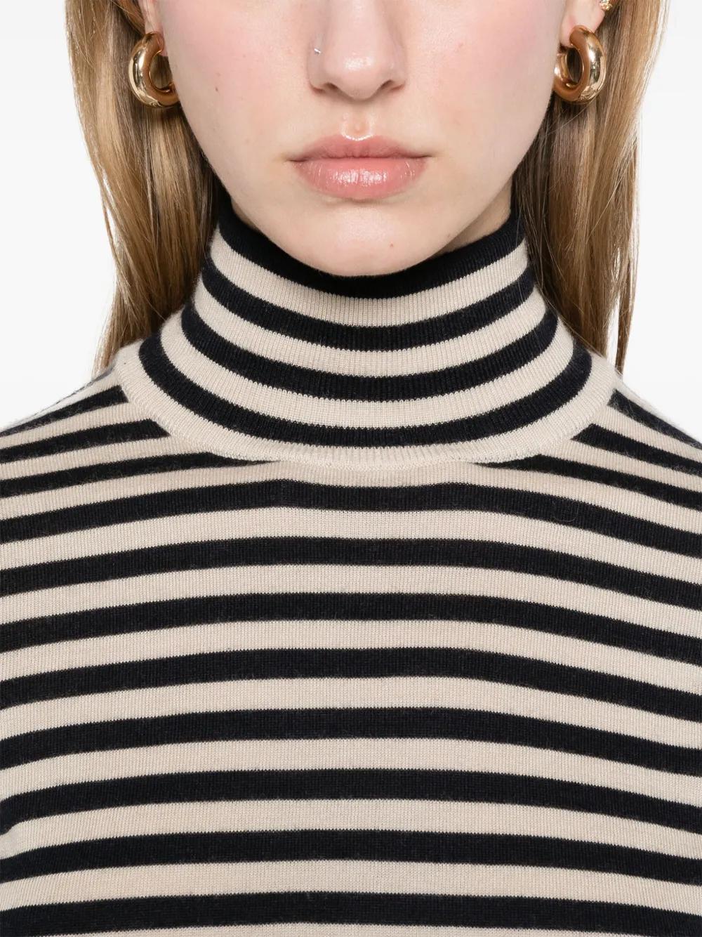 light beige horizontal stripe pattern high neck long sleeves
