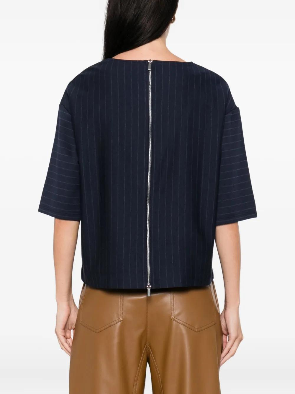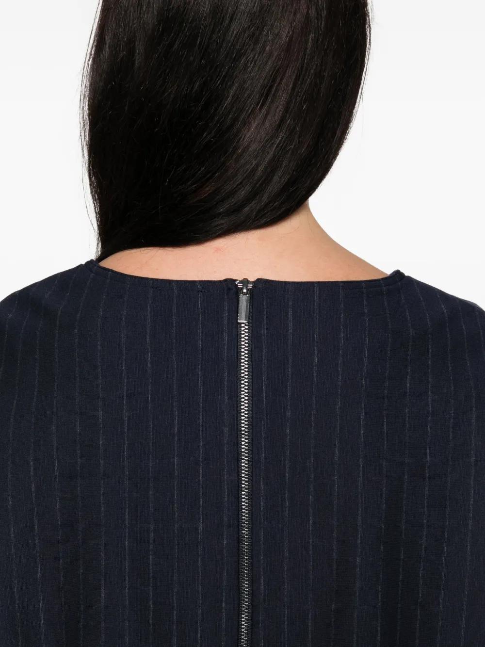 blue pinstripe pattern short sleeves round neck concealed zip fastening cropped length