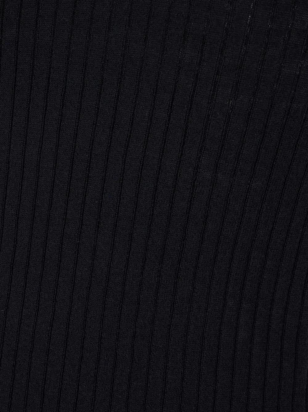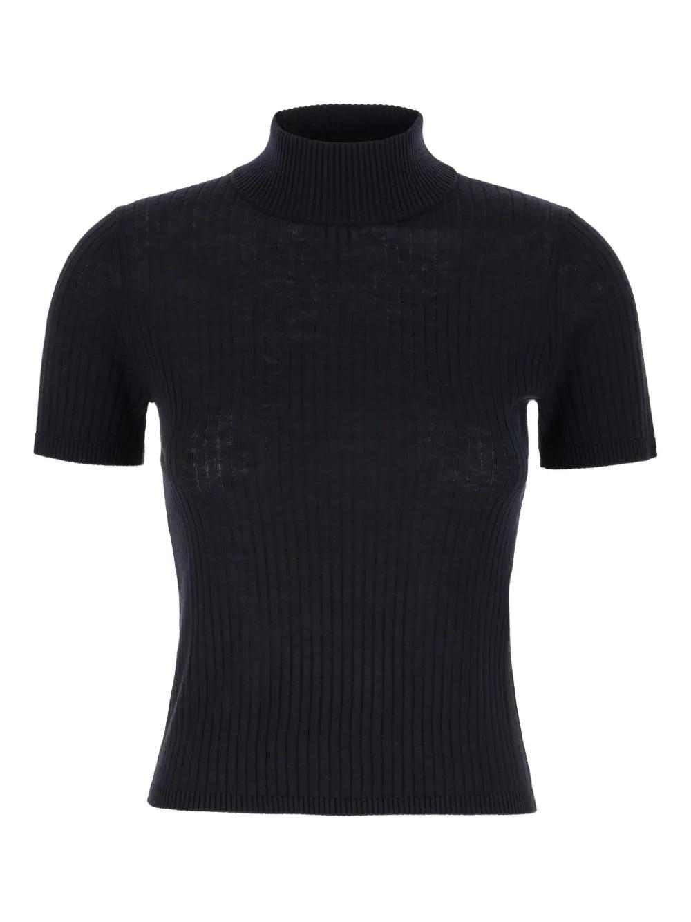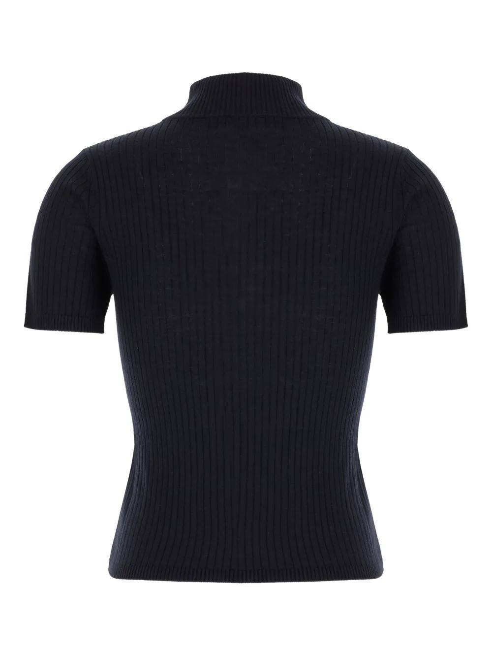 dark blue turtleneck short sleeves ribbed texture silk-wool blend