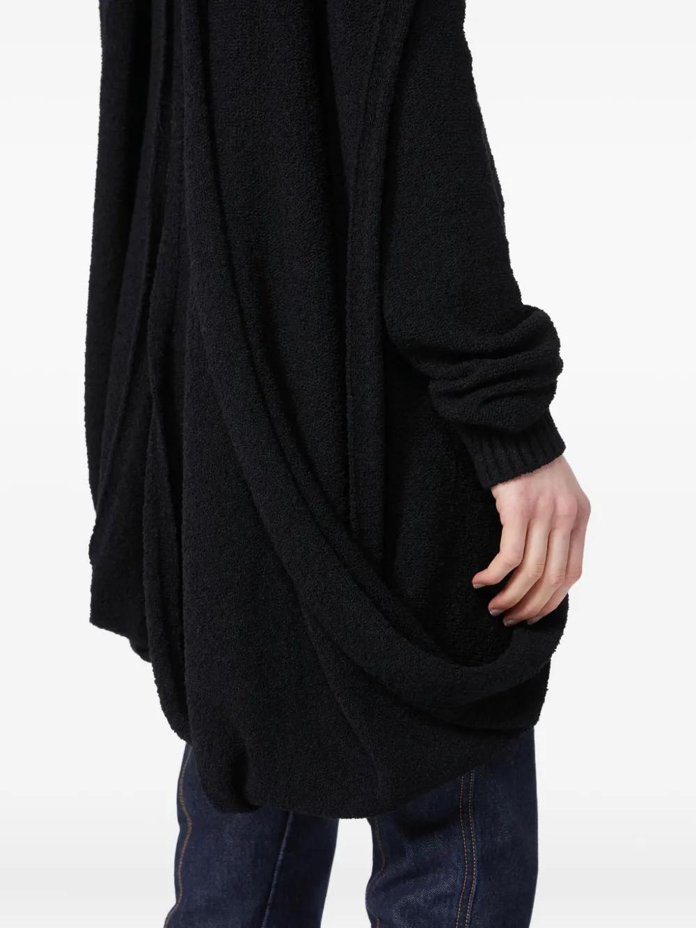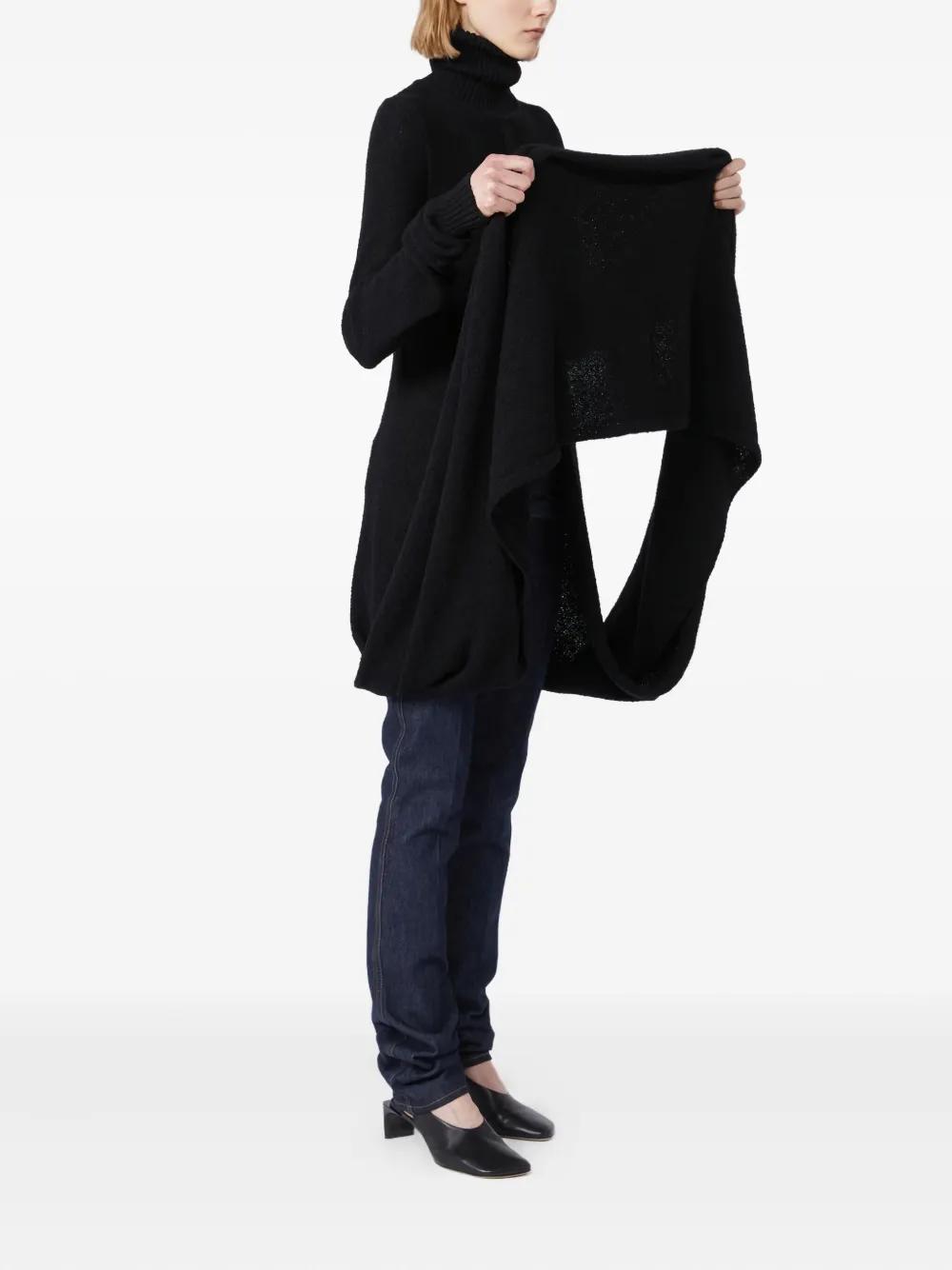 black roll neck draped detailing long sleeves front slit textured knit