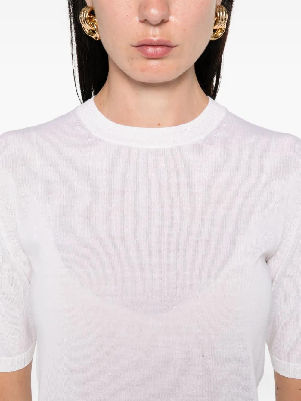 short-sleeve wool top - White