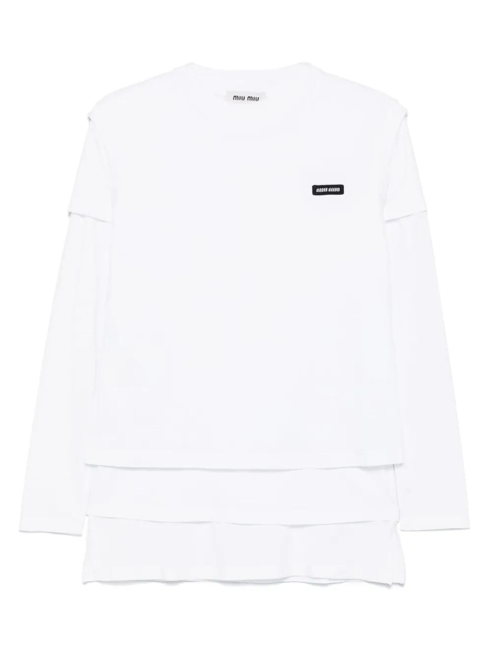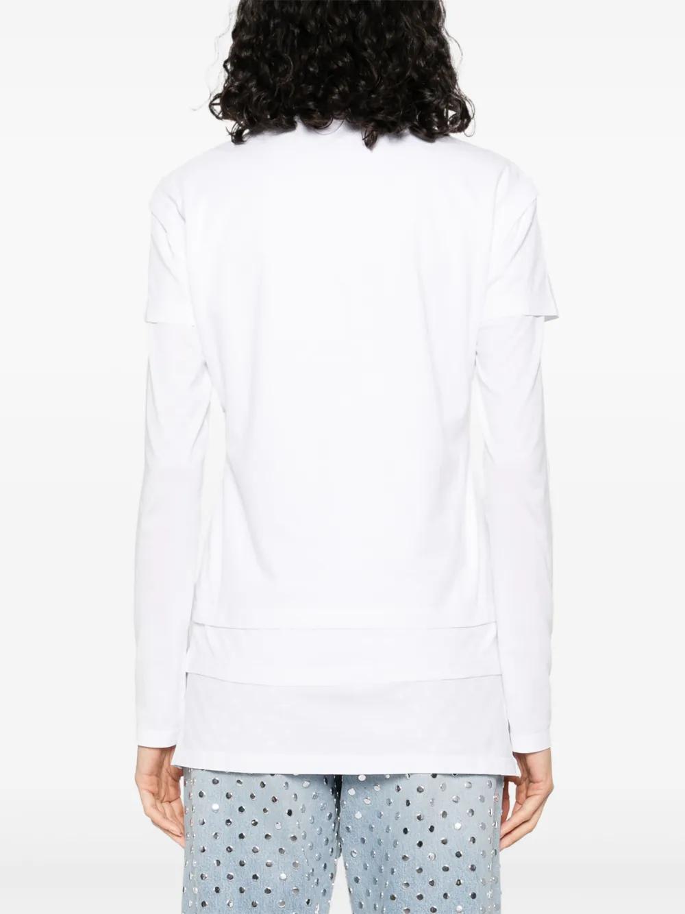 white cotton lightweight jersey ribbed trim signature numbers motif crew neck short sleeves straight hem