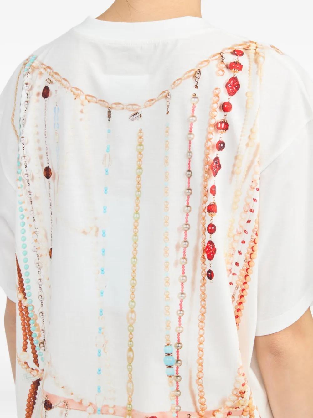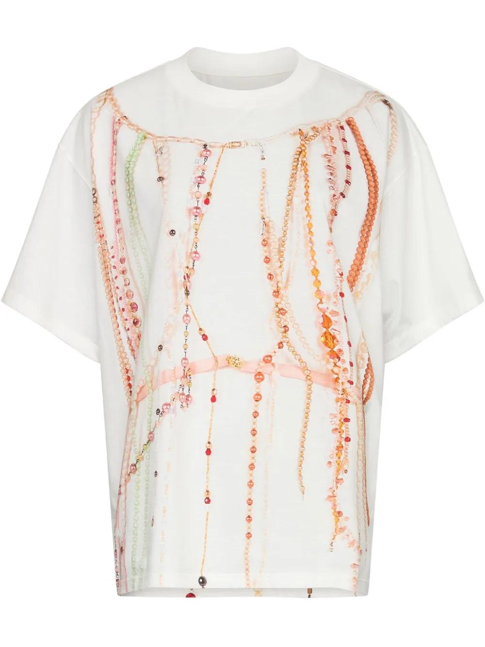 white abstract pattern print round neck short sleeves