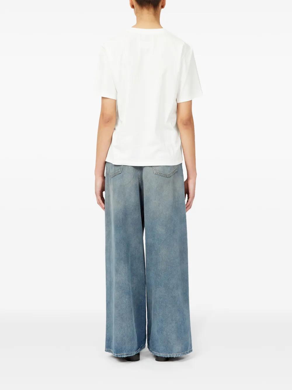 white stretch-cotton soft jersey crew neck drop shoulder short sleeves signature numbers motif straight hem