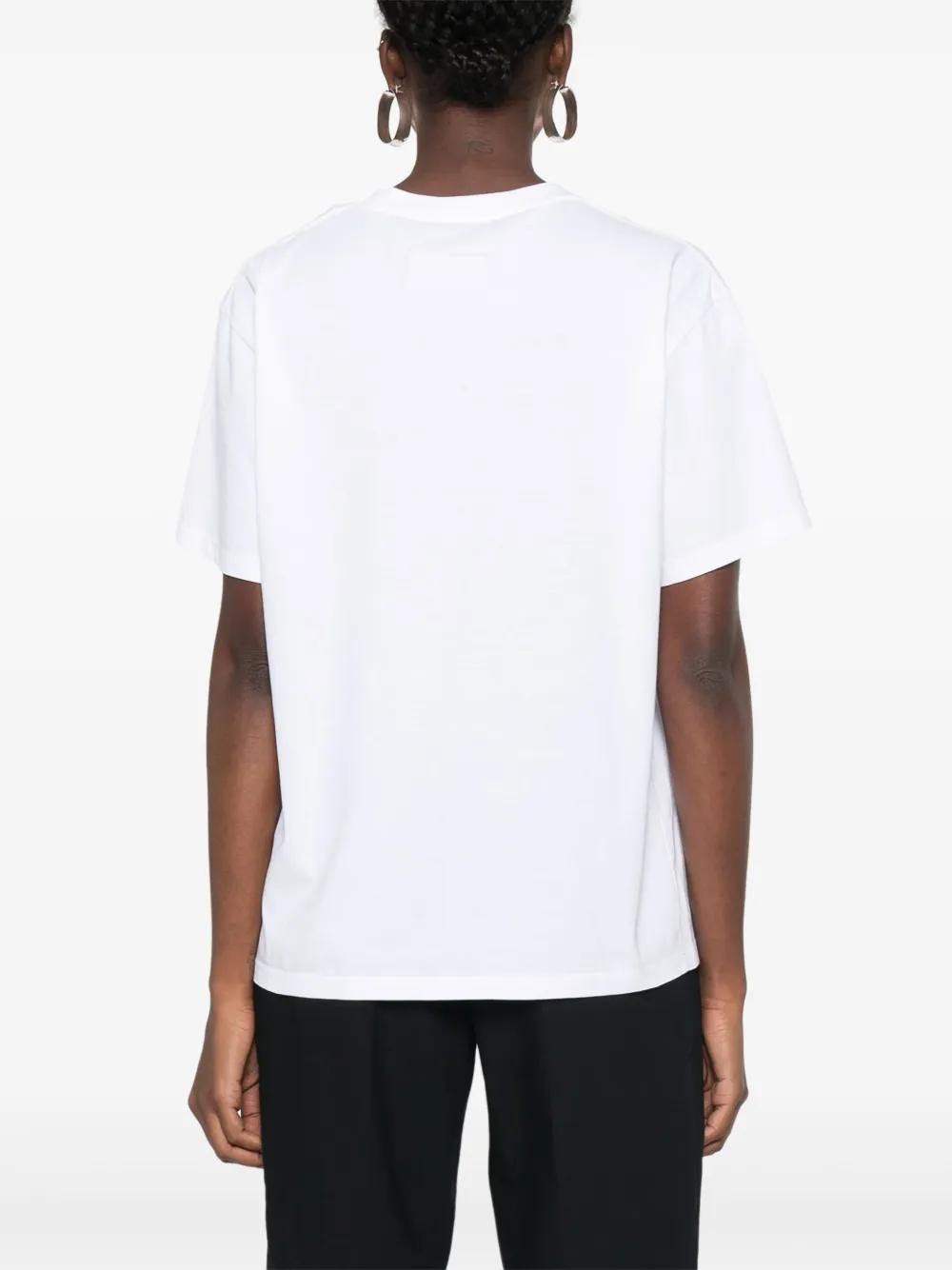 white cotton lightweight jersey ribbed trim signature numbers motif crew neck short sleeves straight hem