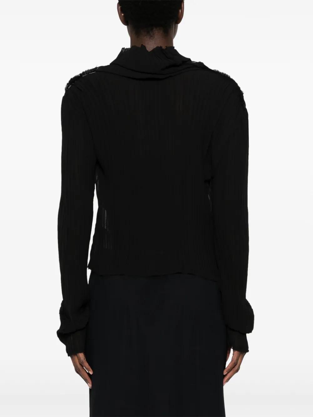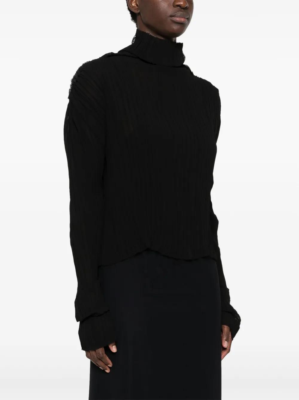 black chiffon semi-sheer construction plissé effect high neck long sleeves signature single-stitch logo internal detachable slip top internal signature numbers motif tag straight hem