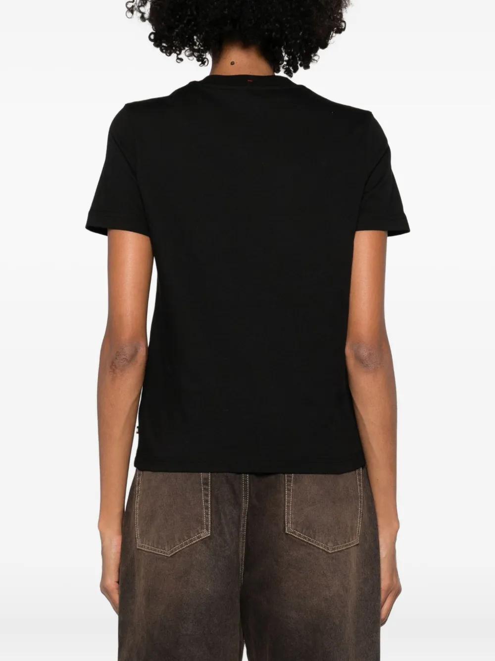 - Produkty marki Guess z serii Eco są projektowane tak, aby generowały jak najmniej odpadów bez obniżenia jakości i trwałości. - Bawełna organiczna uprawiana jest bez użycia niebezpiecznych dla zdrowia substancji chemicznych, chemicznych środków szkodnikobójczych czy nawozów sztucznych. - Model z ozdobną aplikacją z dżetów. - Klasyczny, okrągły dekolt. - Krótki rękaw. - Długość: 61 cm. - Szerokość pod pachami: 47 cm. - Wymiary podane dla rozmiaru: S.