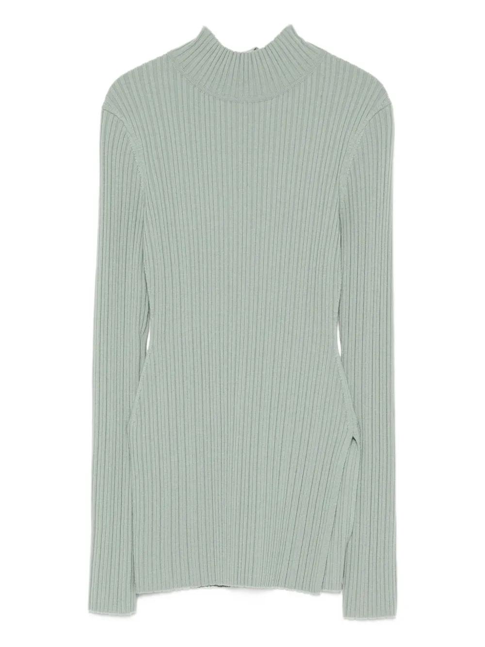 sage green ribbed texture turtleneck neckline long sleeves side slits