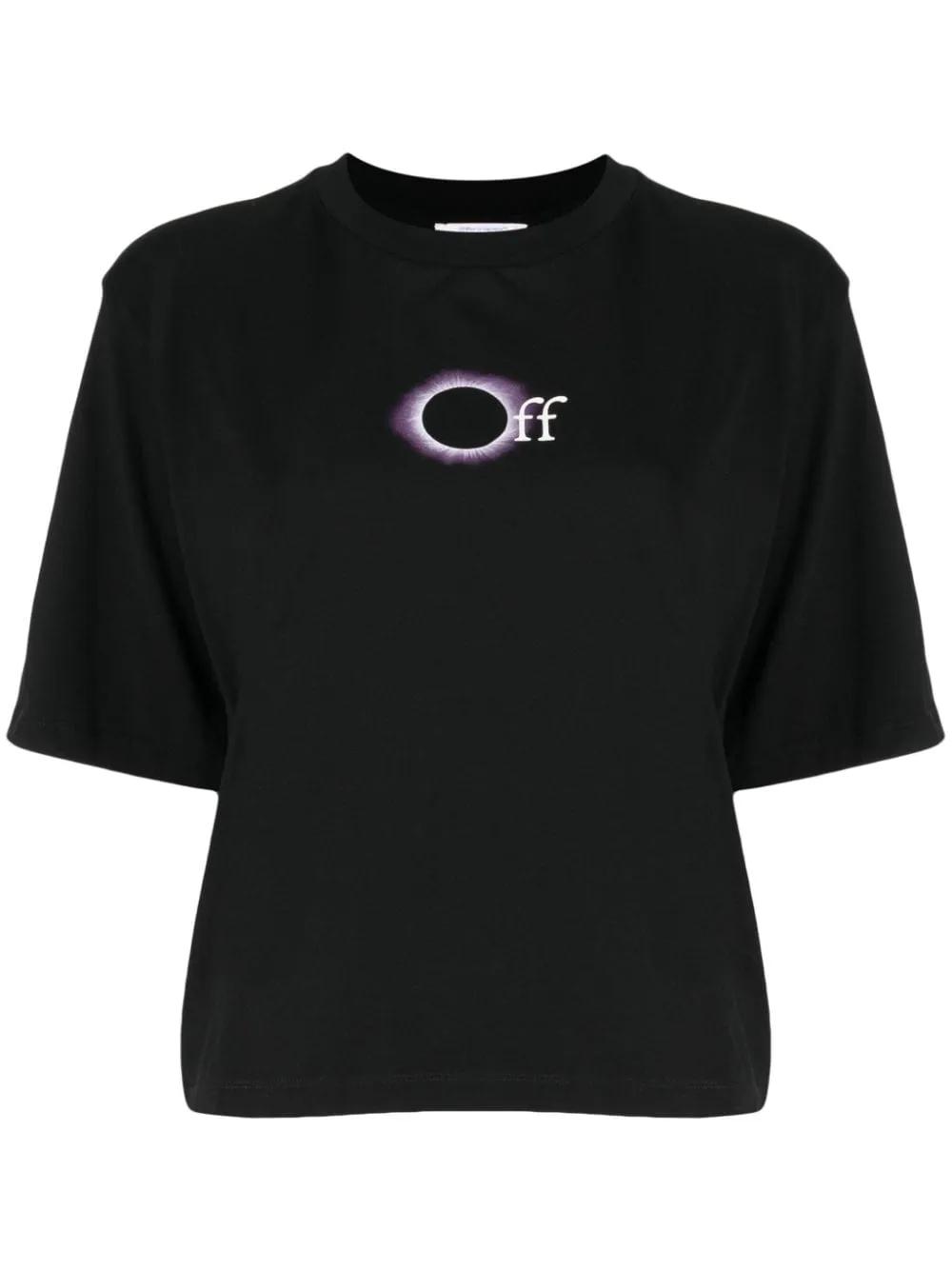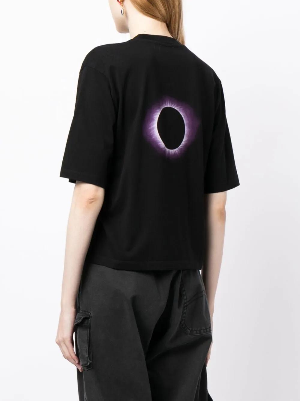 black/white cotton jersey knit logo print at the chest graphic print to the rear crew neck short sleeves straight hem