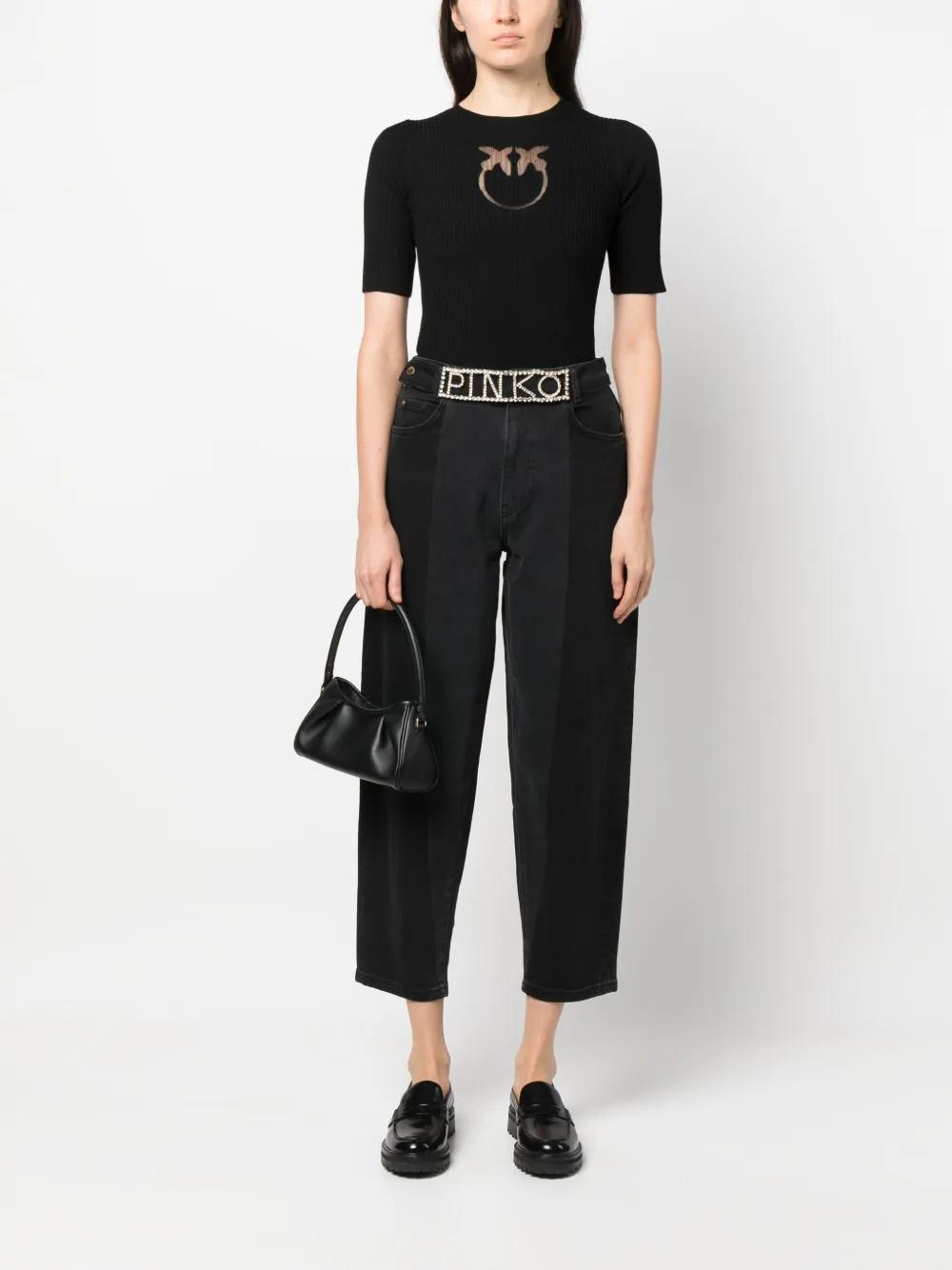 PINKO intarsia-knit logo ribbed-knit top - Black