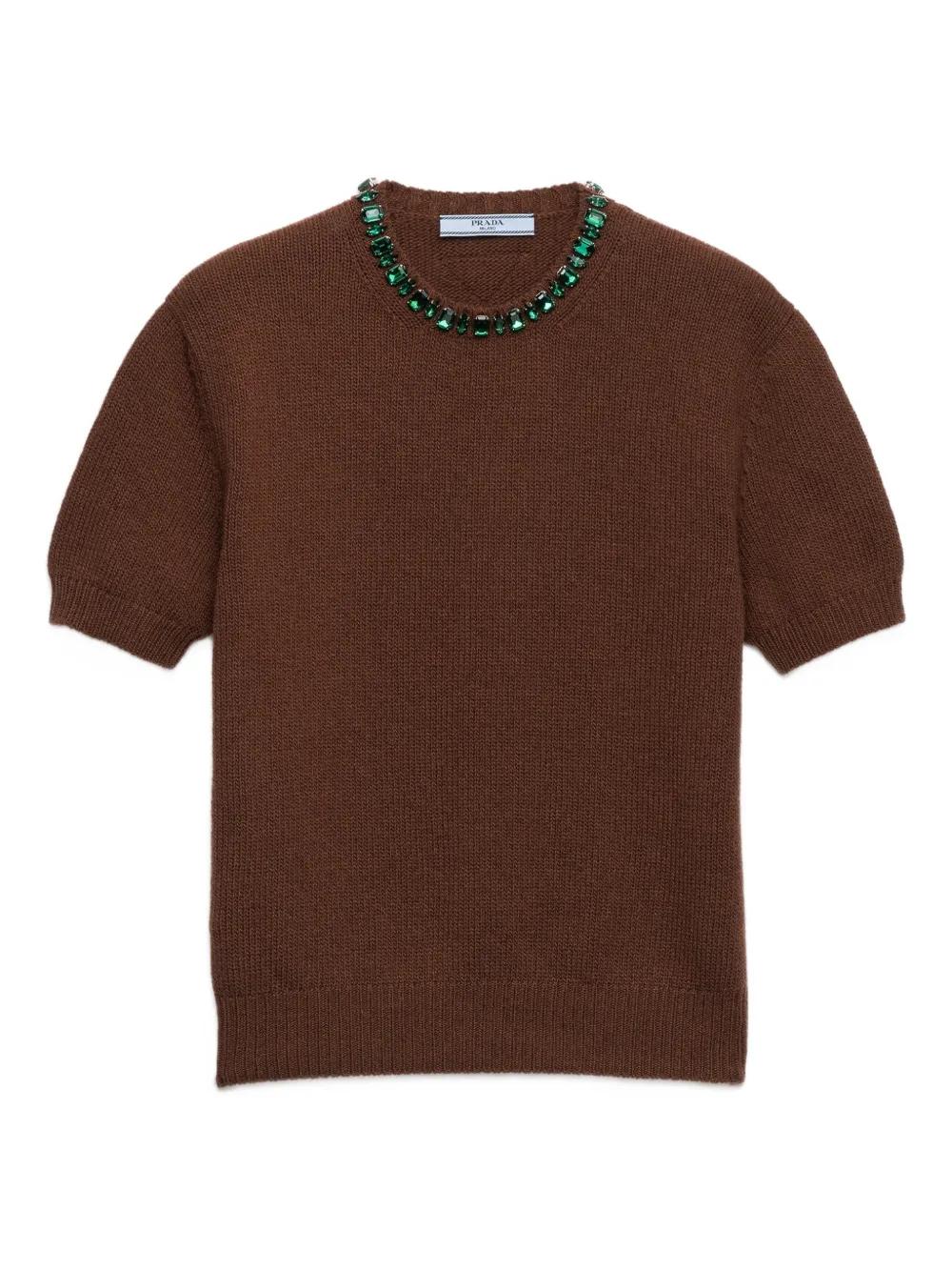 Prada jewel appliqued ribbed knit sweater - Brown