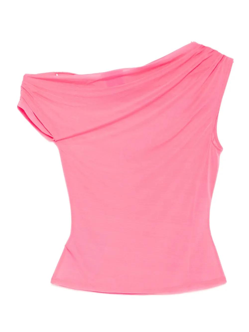 black jersey texture asymmetric neck one-shoulder sleeveless straight hem