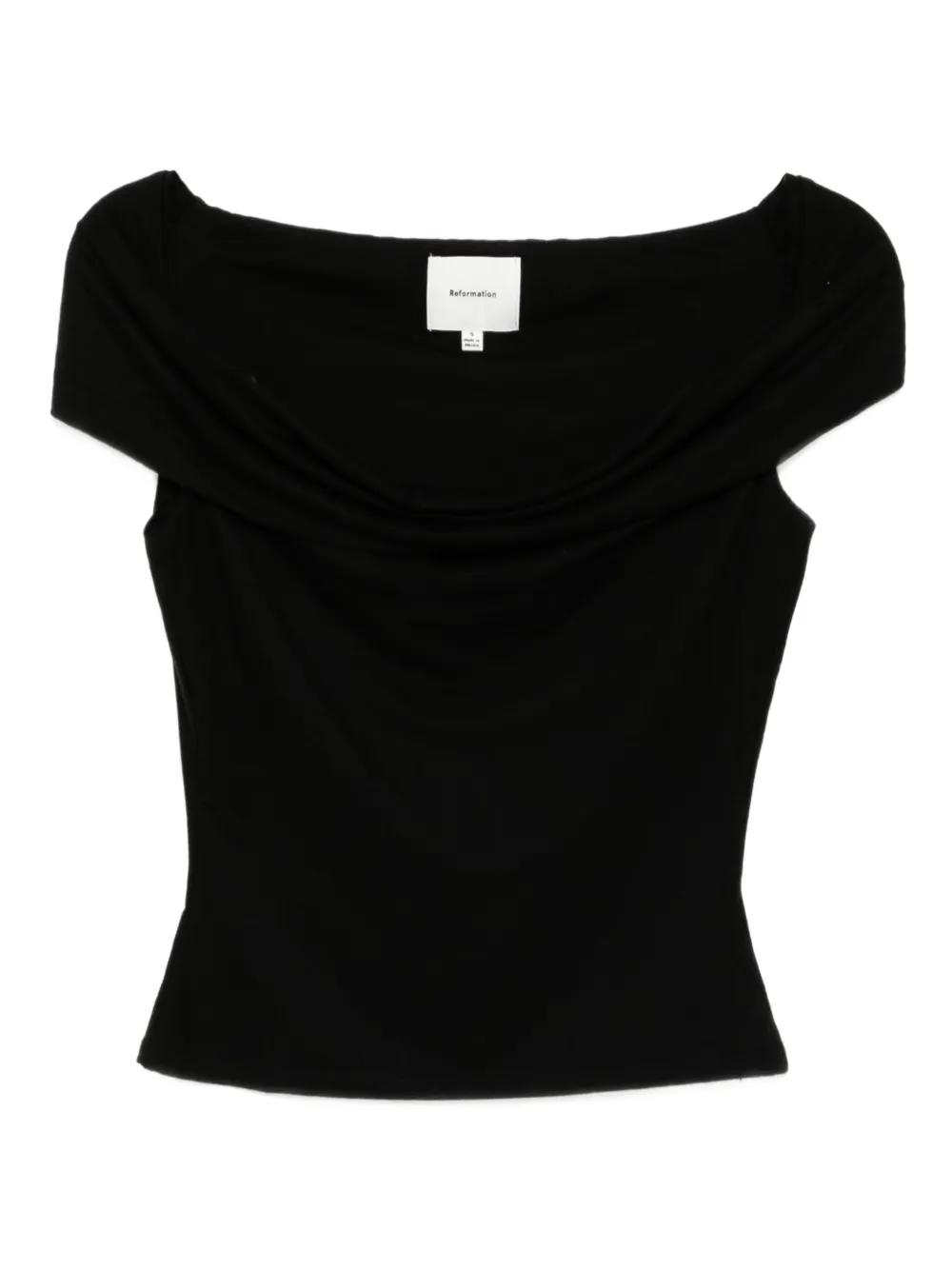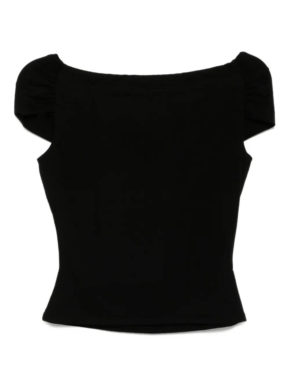 black stretch-design V-neck ruched detailing long sleeves straight hem