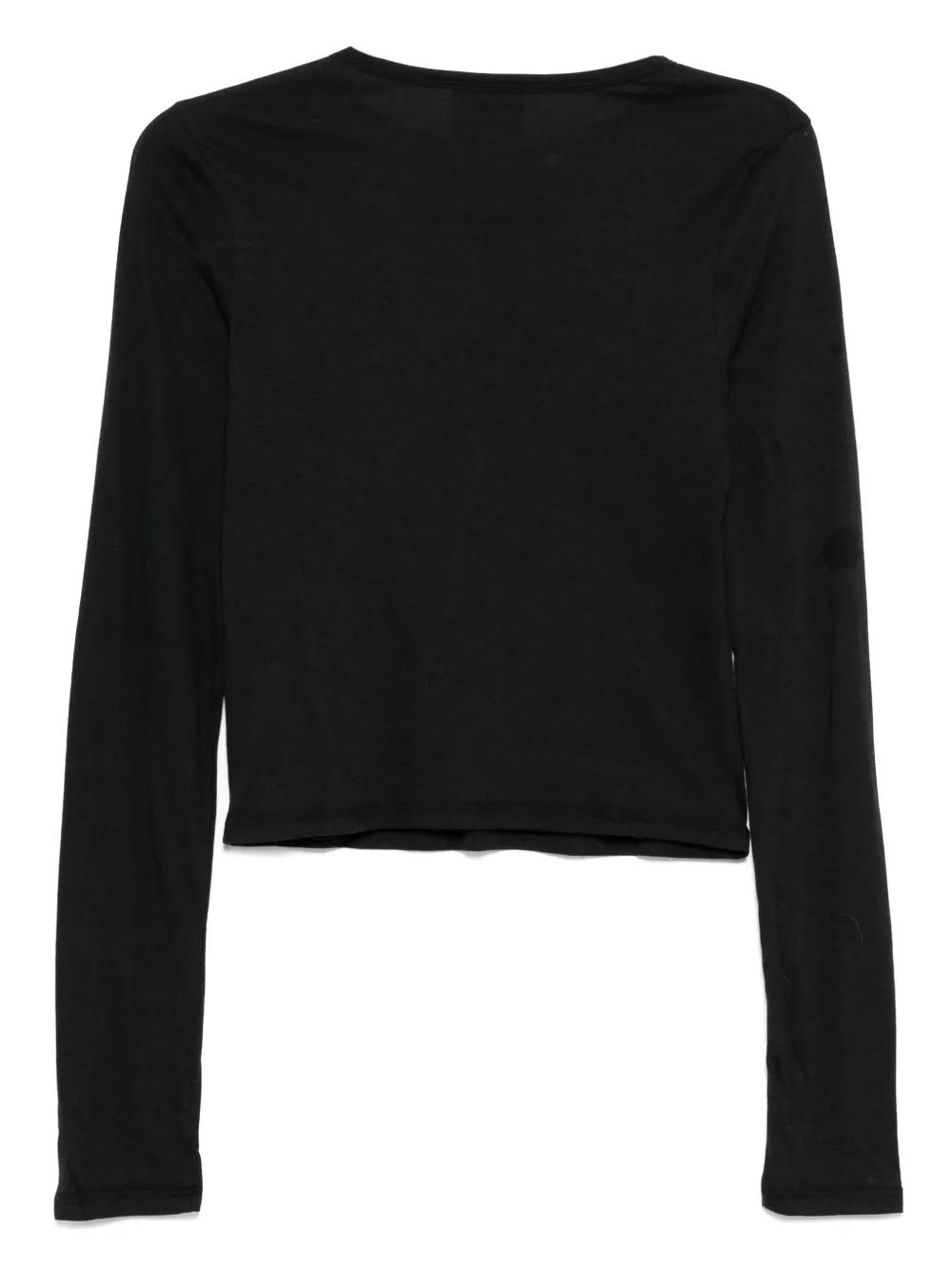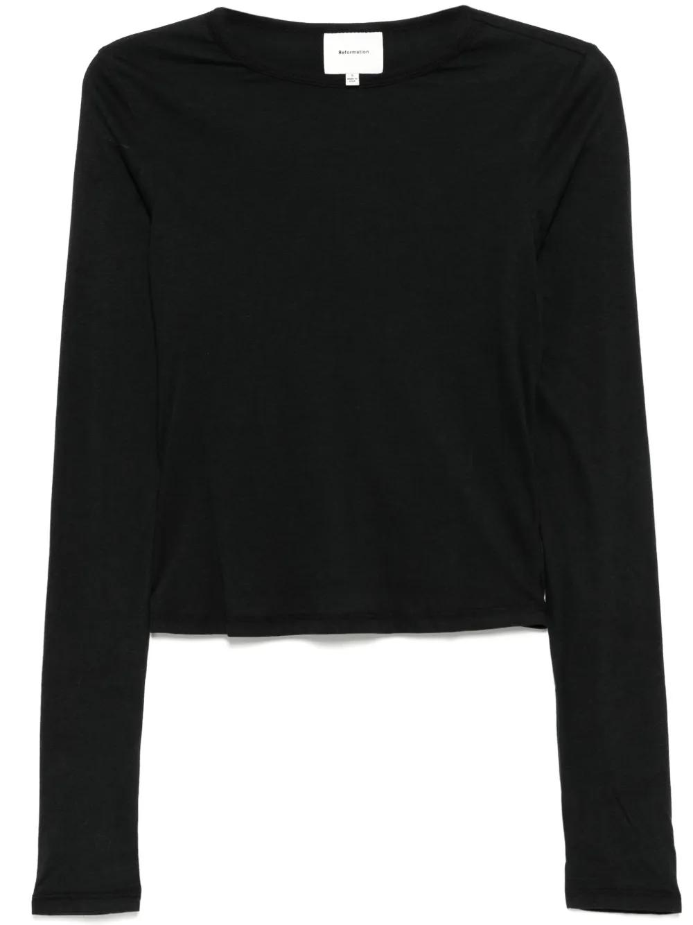 black TENCEL™ Lyocell-oranic cotton blend jersey texture crew neck long sleeves straight hem