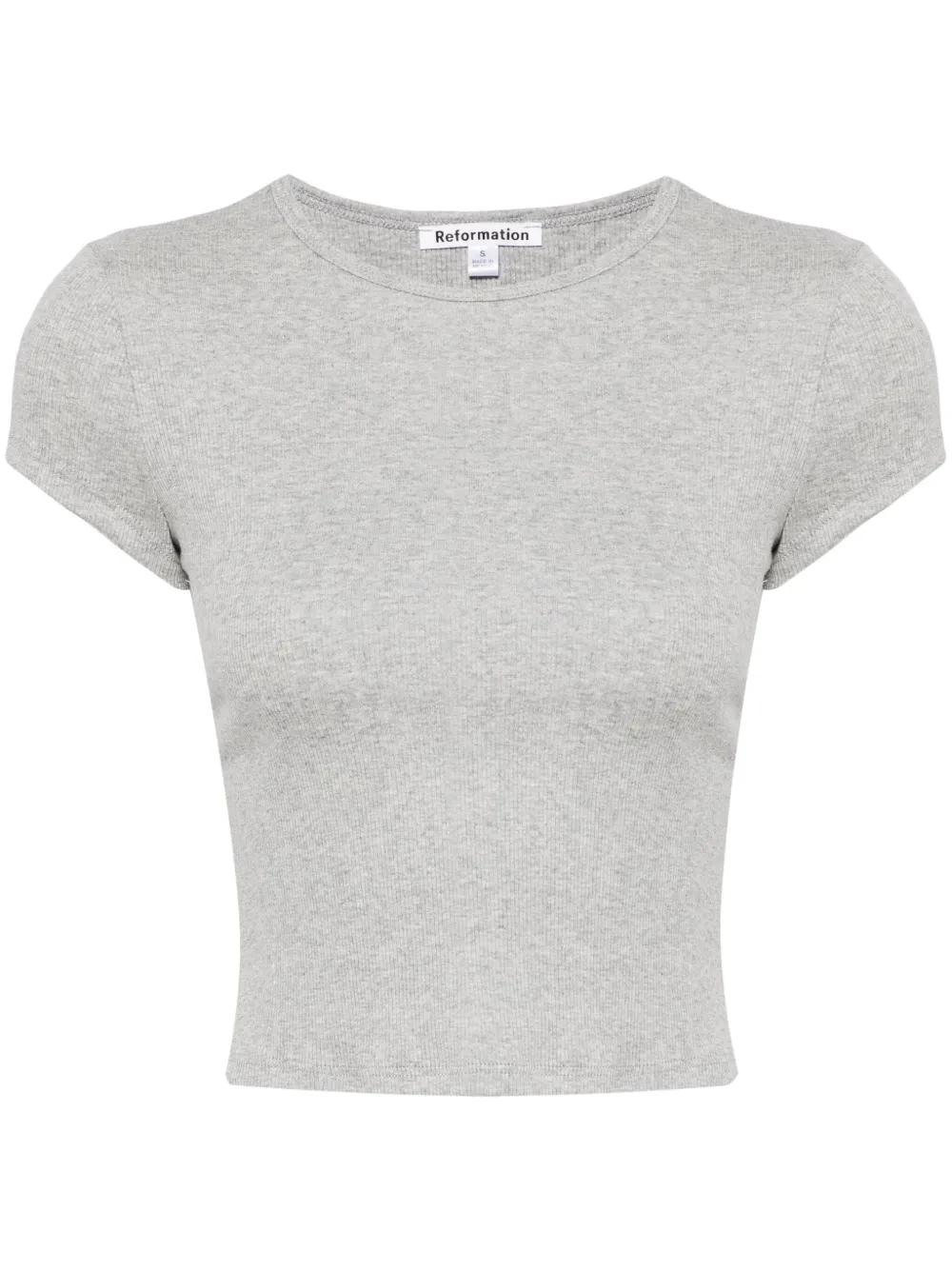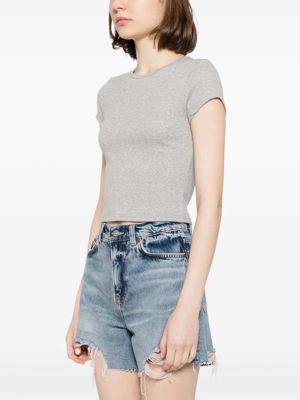light grey stretch organic cotton jersey texture mélange effect crew neck cap sleeves straight hem