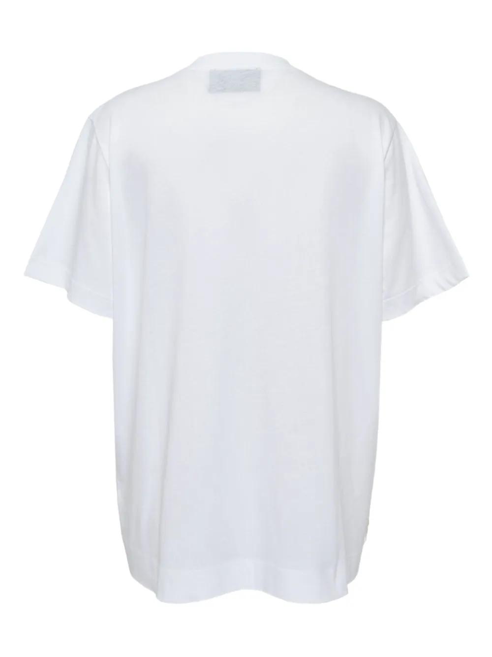 white ribbon-detail short-sleeves crew-neck unraveling-detail bow-detail