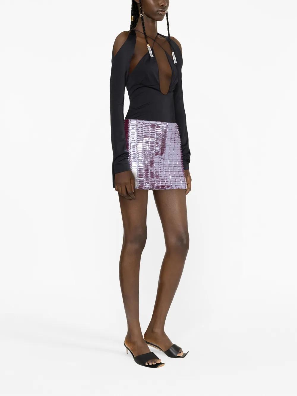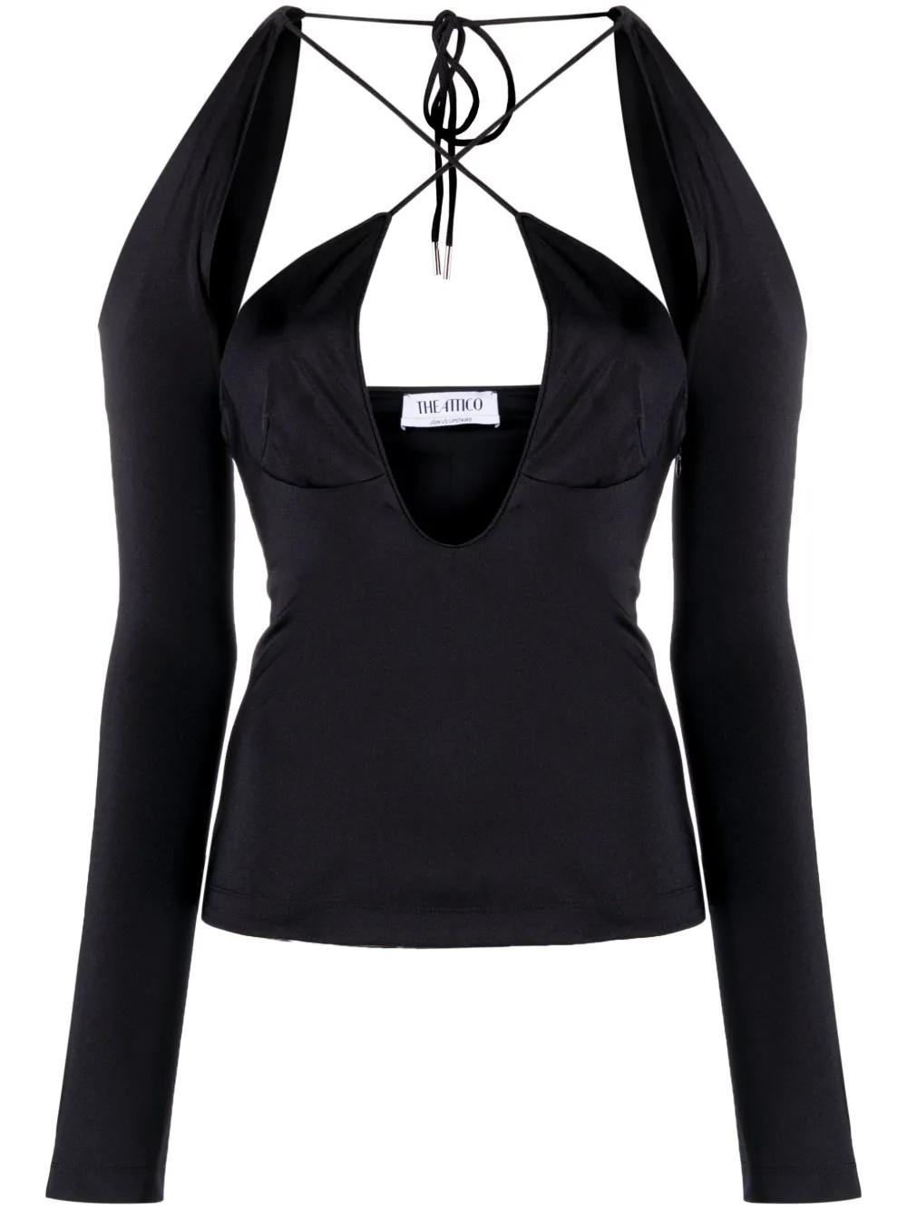 black stretch-design cut-out detailing crossover neck cold-shoulder design long sleeves square open back rear tie fastening straight hem