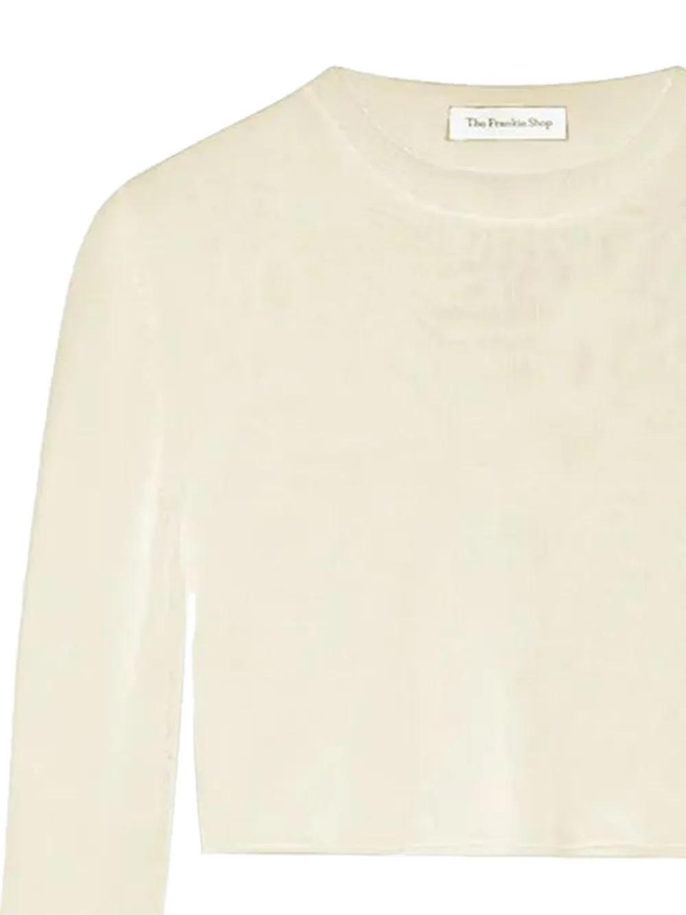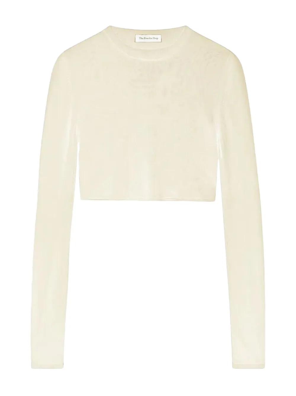 milk white cotton tulle inserts fringed edge round neck short sleeves cropped