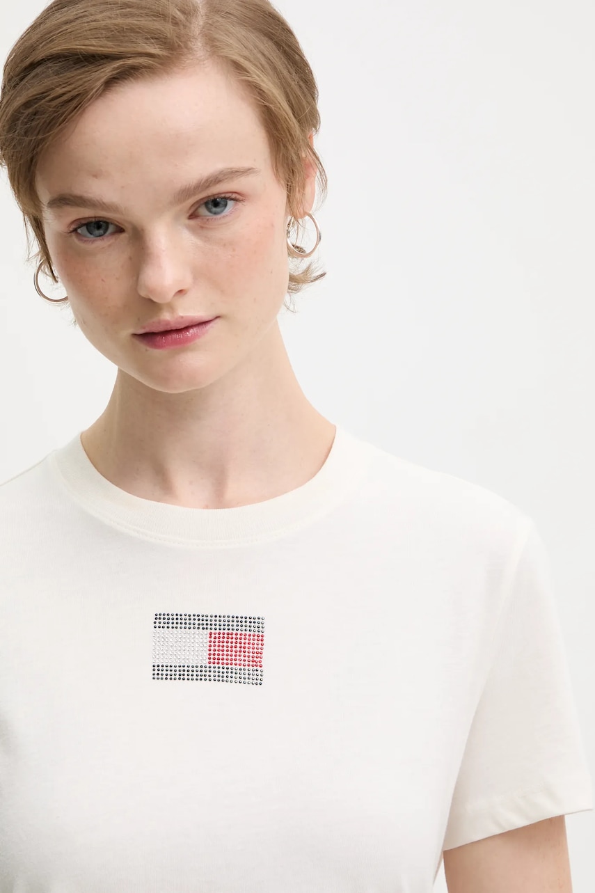 Tommy Jeans t-shirt bawełniany damski kolor beżowy DW0DW21965