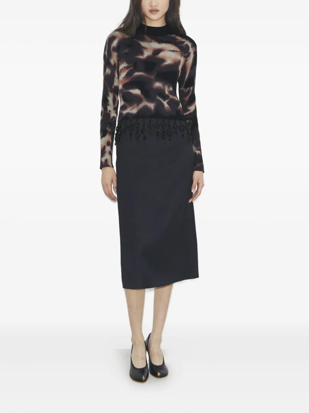 black/brown embellishment detail mock neck long sleeves ribbed cotton