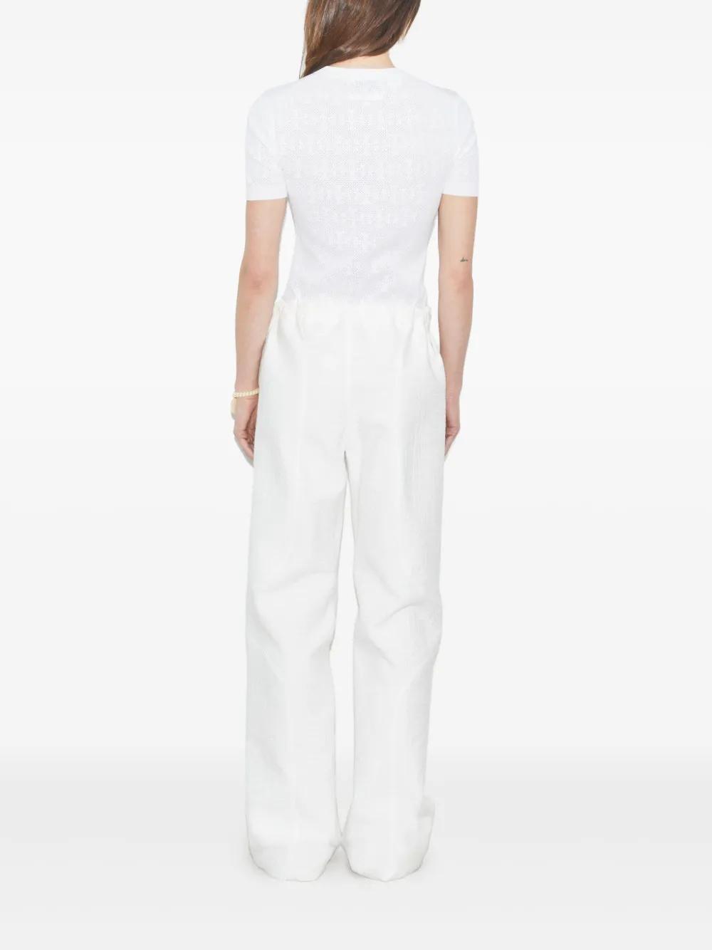 white textured pattern round neckline short sleeves ribbed detailing