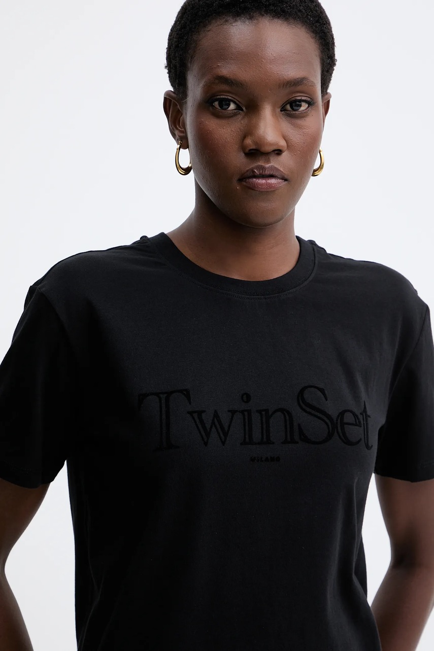 Twinset t-shirt bawełniany damski kolor czarny 252TT2320