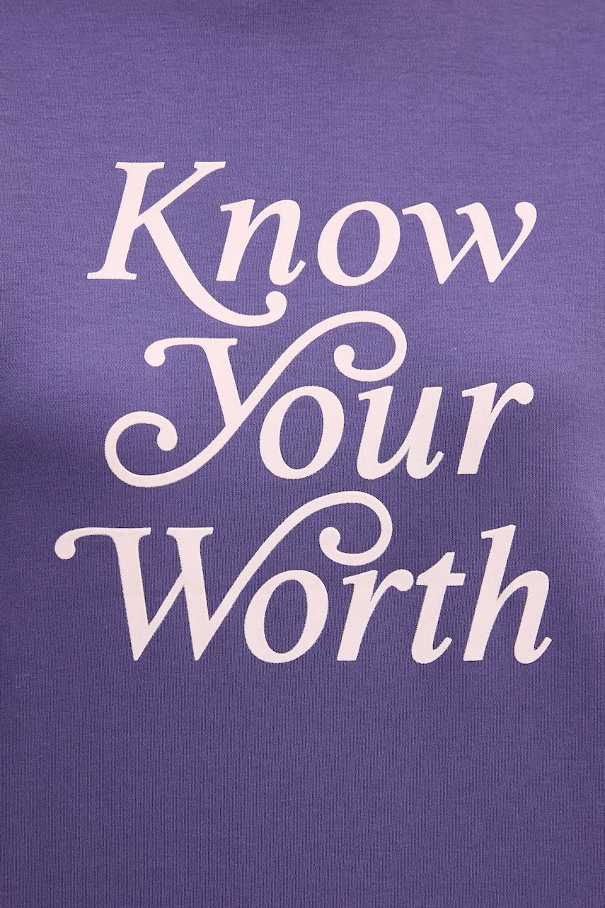 - Luźny krój zapewniający pełną swobodę ruchów. - Okrągły, prążkowany dekolt. - Krój rękawa z obniżoną linią ramion nie ogranicza mobilności. - Model z nadrukiem z przodu. - Długość: 58 cm. - Szerokość pod pachami: 54 cm. - Wymiary podane dla rozmiaru: S.
