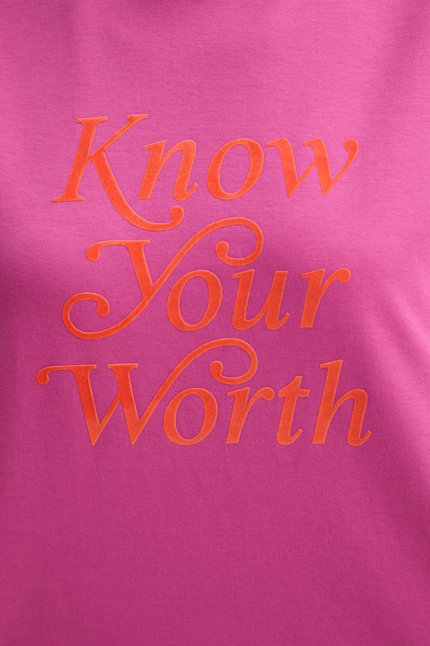 - Luźny krój zapewniający pełną swobodę ruchów. - Okrągły, prążkowany dekolt. - Krój rękawa z obniżoną linią ramion nie ogranicza mobilności. - Model z nadrukiem z przodu. - Długość: 58 cm. - Szerokość pod pachami: 54 cm. - Wymiary podane dla rozmiaru: S.