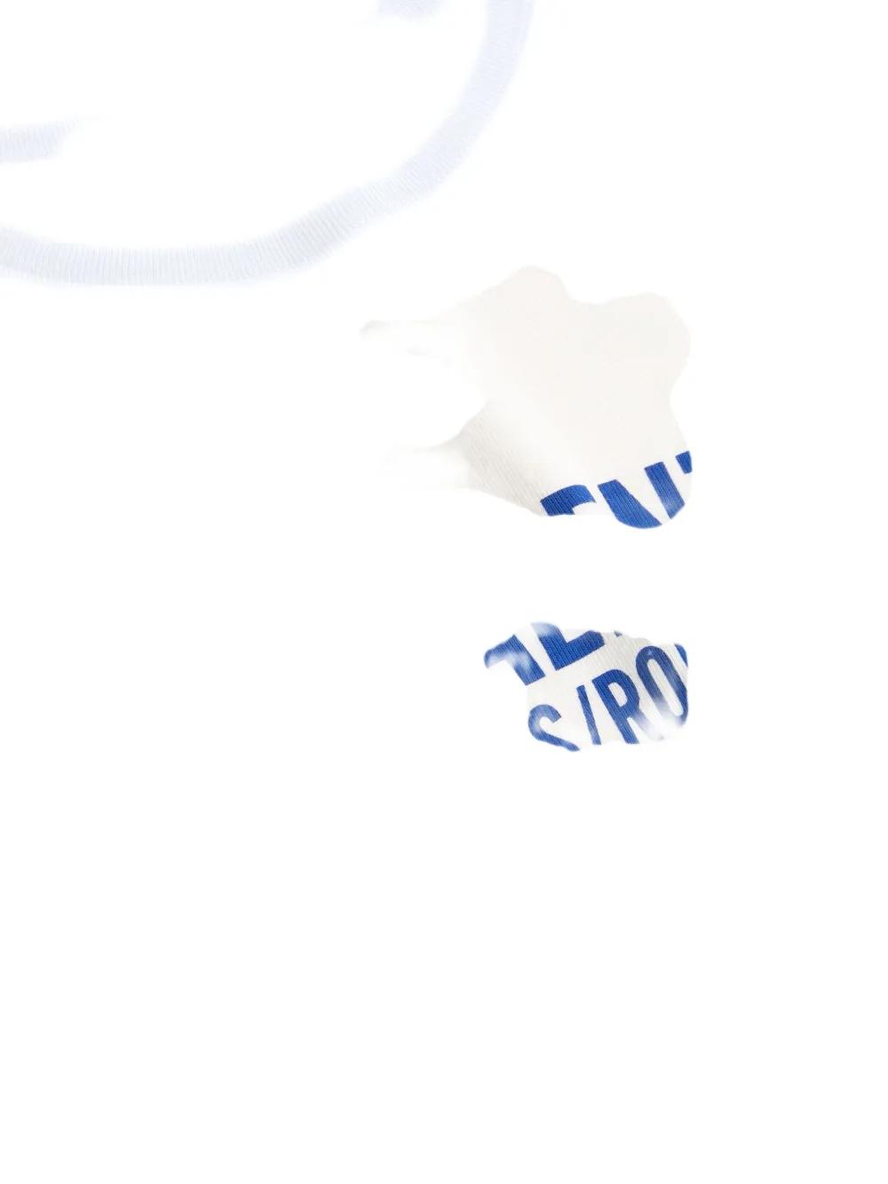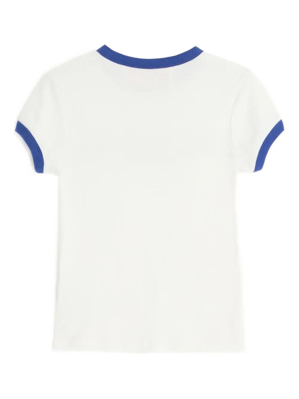 white cotton contrasting trim crew neck short sleeves Chez print at the chest