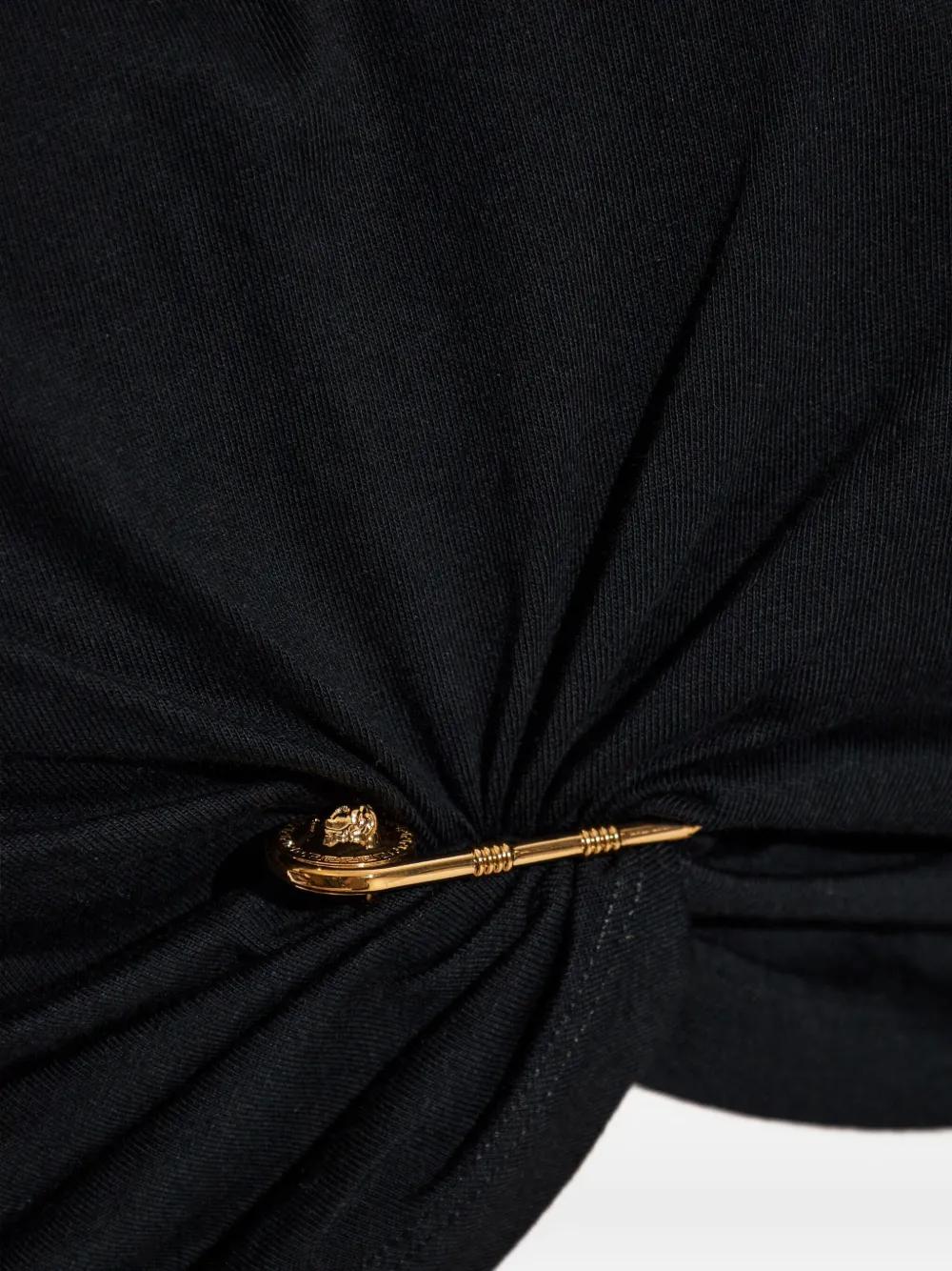 black gold-tone embellishments knot detail short sleeves round neck Medusa-head clasp