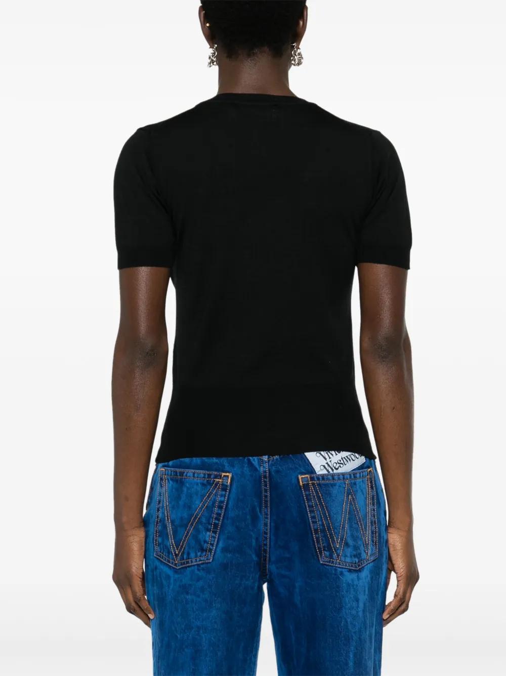 black merino wool-silk blend knitted construction fine knit signature Orb logo embroidery at the chest crew neck short sleeves ribbed trim straight hem