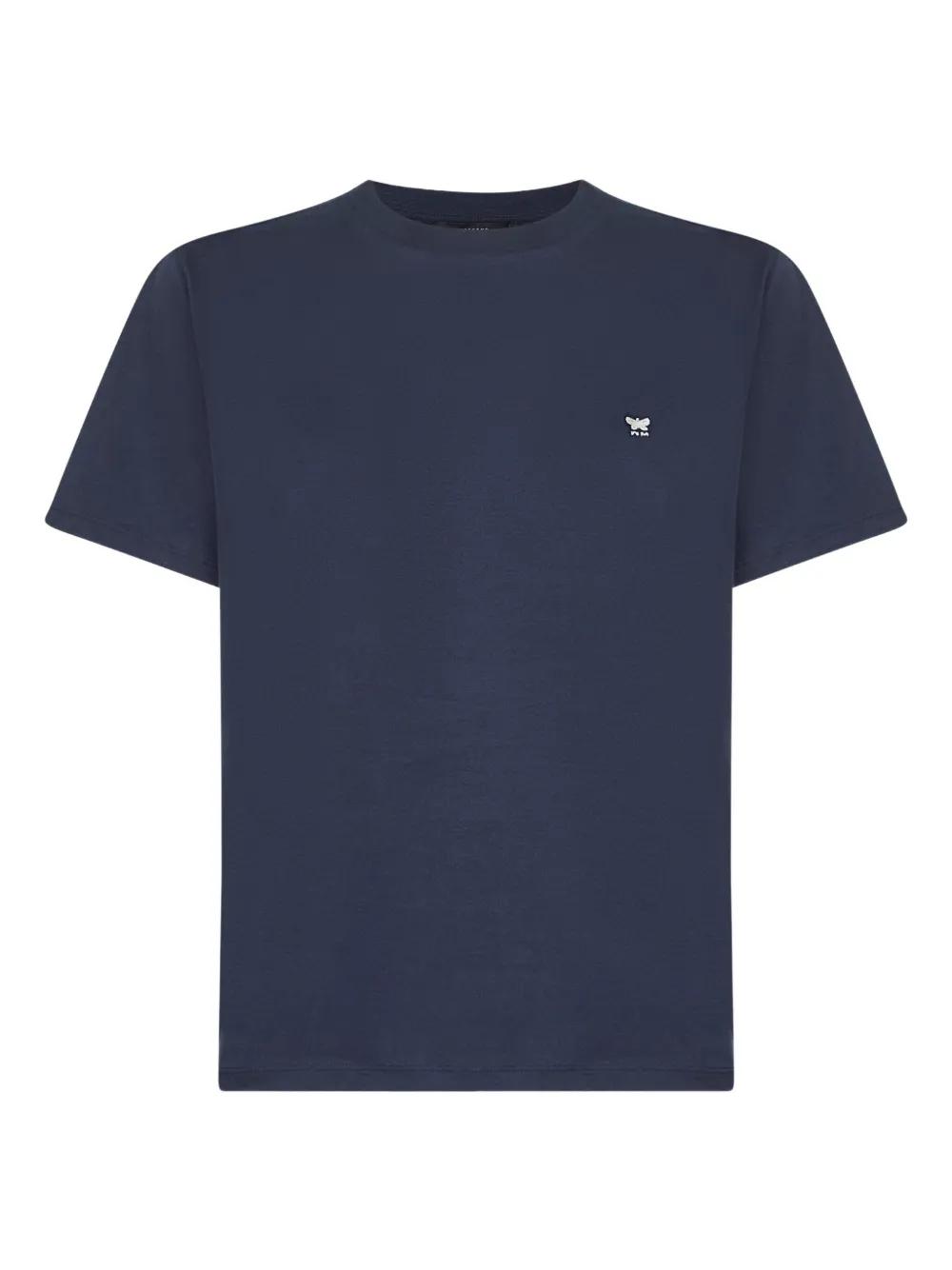 dark blue ribbed crewneck short sleeves embroidered butterfly logo