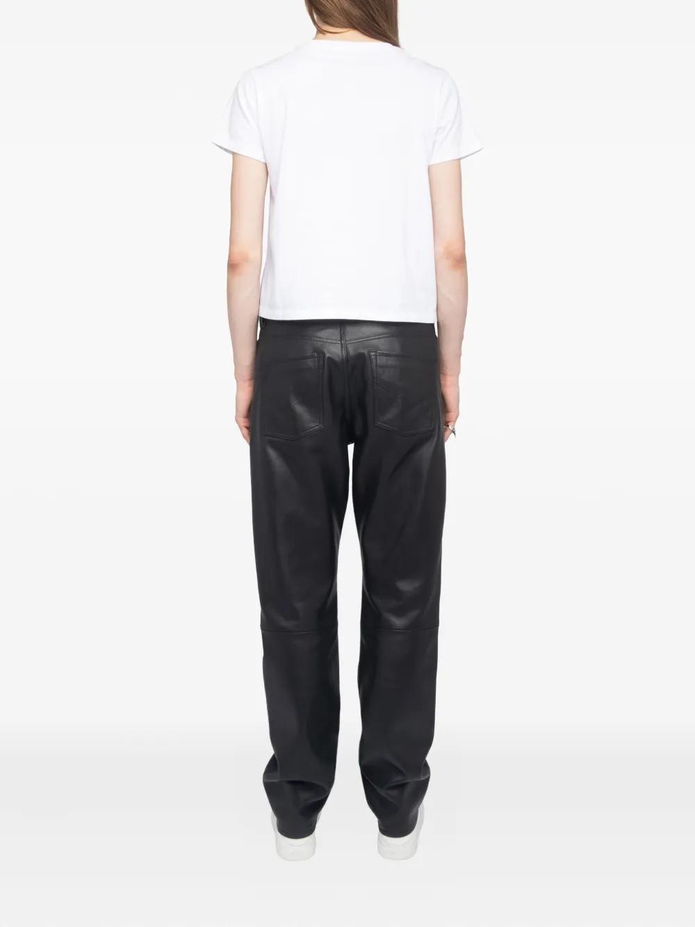 black recycled polyester blend jersey texture crystal-embellished wings appliqué to the front crew neck short sleeves straight hem unlined
