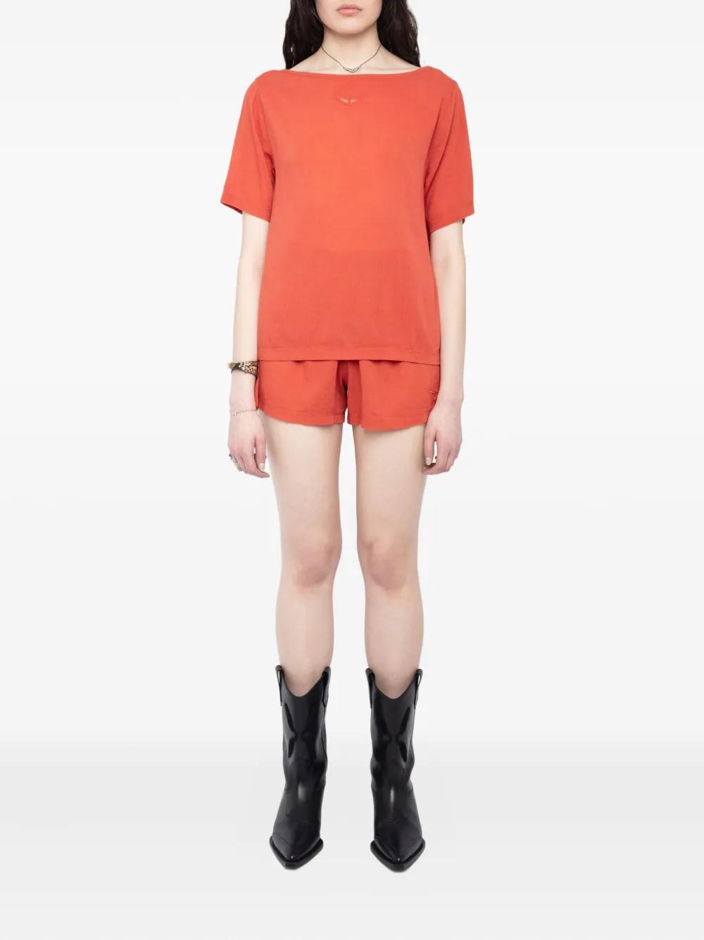 geranium orange rear lace-up fastening open back short sleeves straight hem