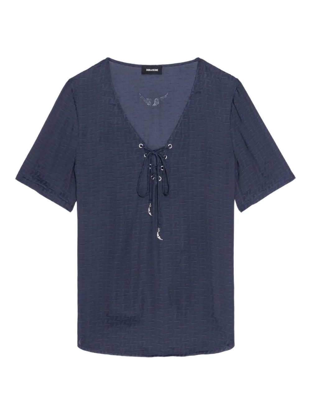 Zadig&Voltaire lace-up v-neck t-shirt - Blue