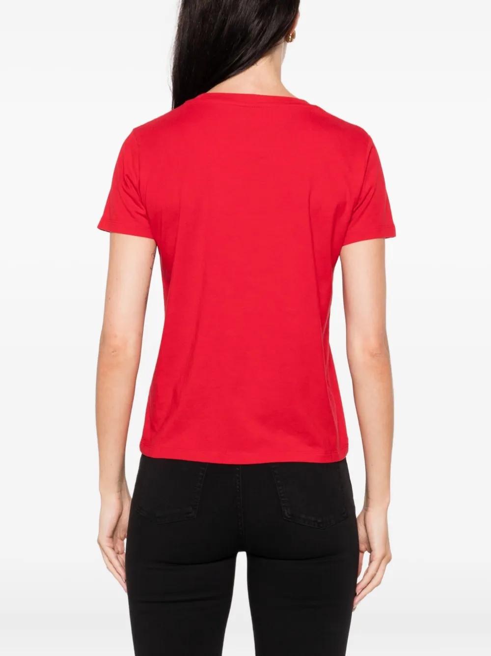 white red trim rhinestone embellishment graphic print short sleeves crew neck