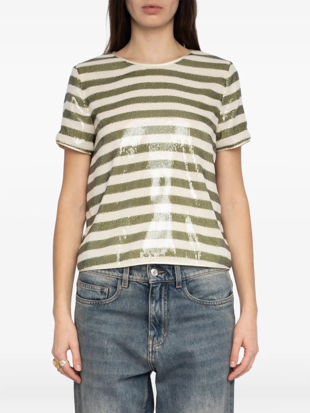 Zadig&Voltaire Tchao sequin stripe T-shirt - Green