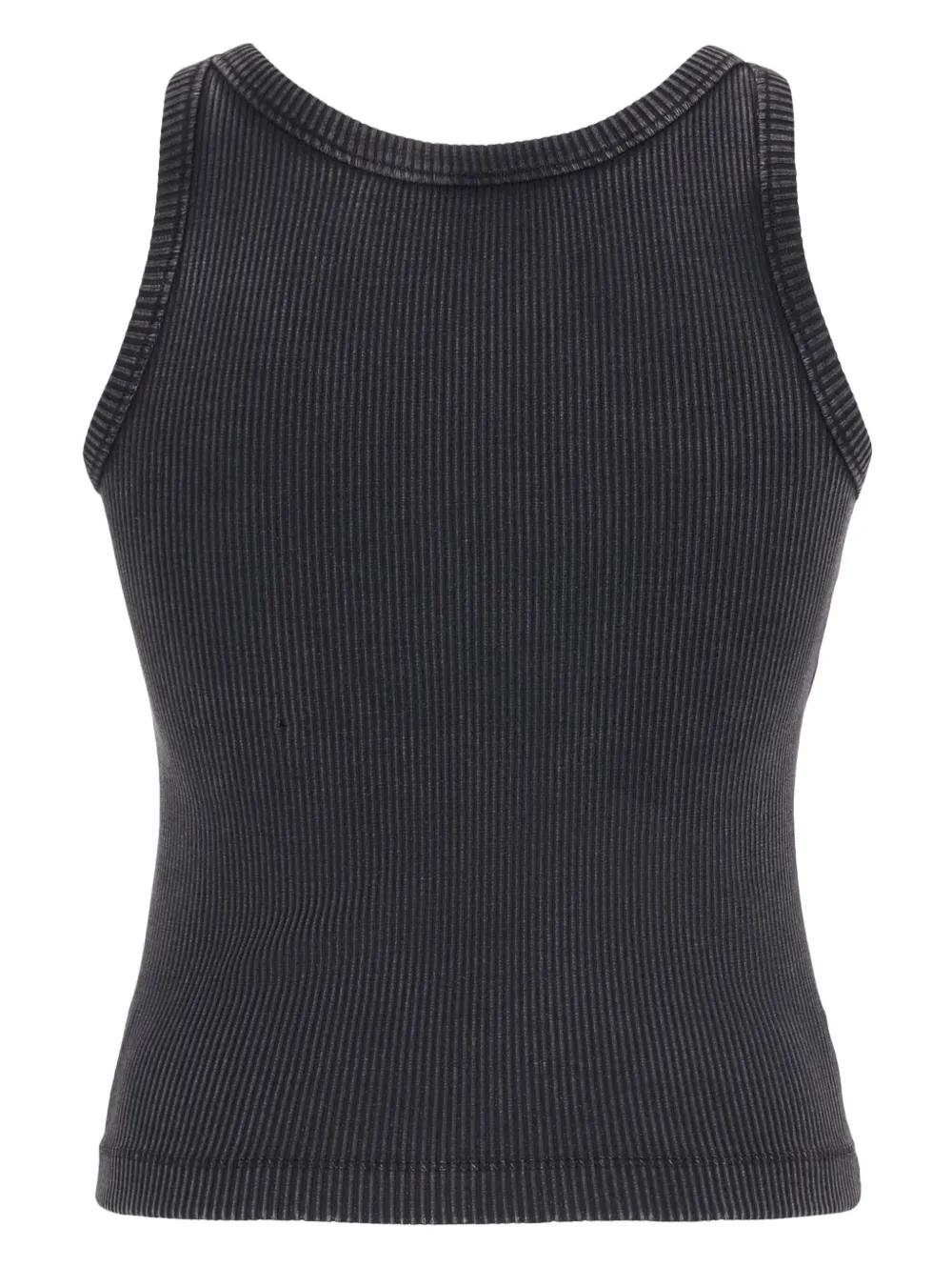 anthracite grey cotton fine ribbed appliqué logo round neck sleeveless straight hem
