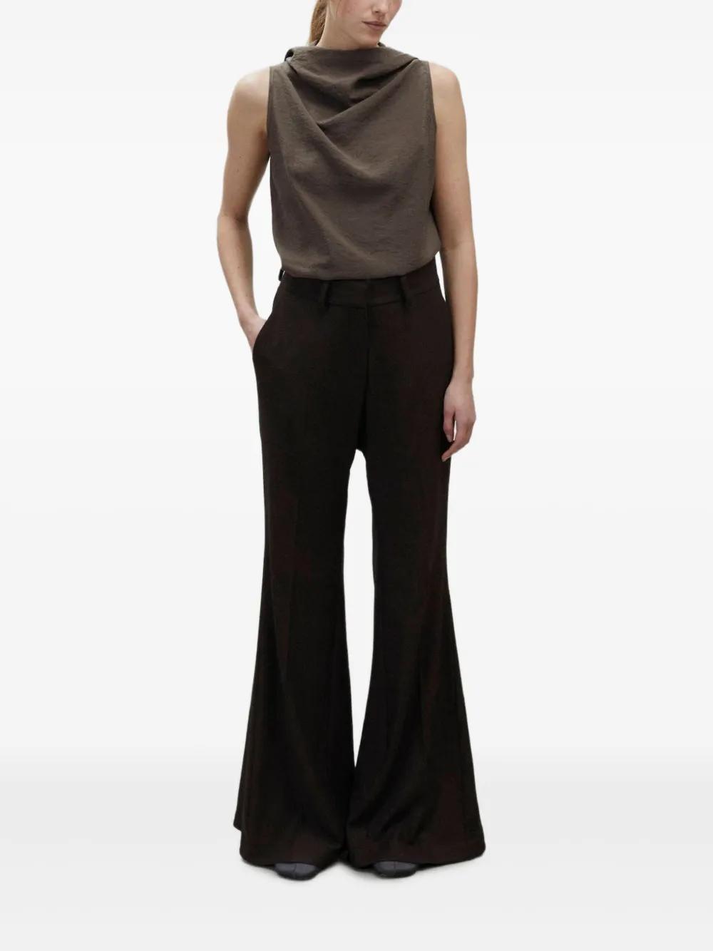 dark grey wool concealed front fastening asymmetric hem sleeveless