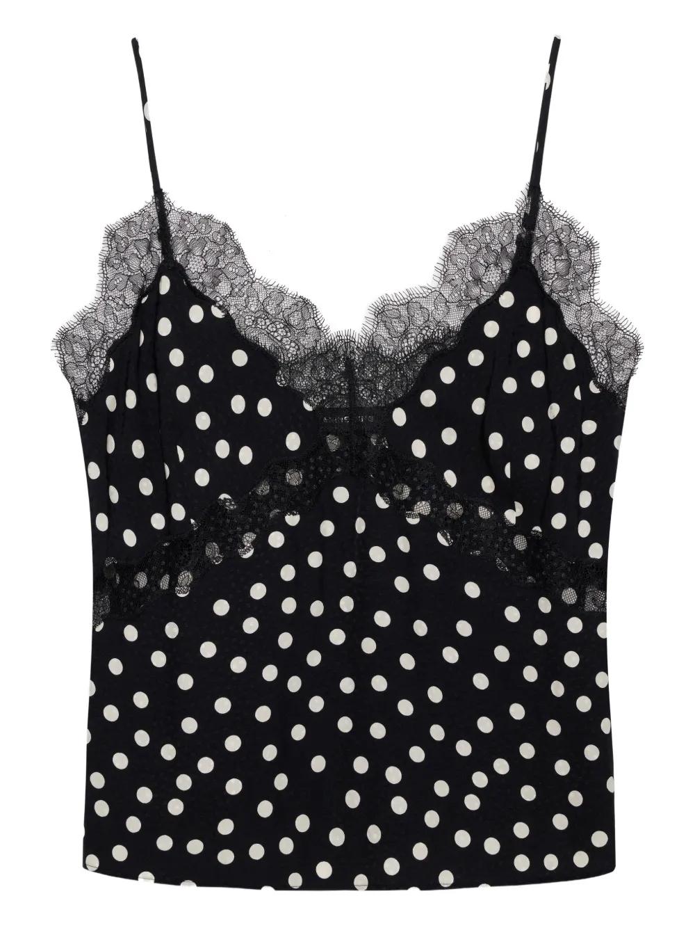 ANINE BING lace polka dot top - Black