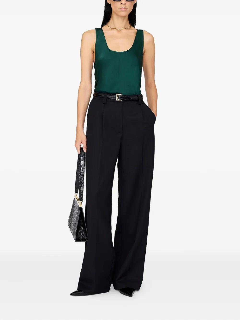 black V-neck wide shoulder straps appliqué logo sleeveless