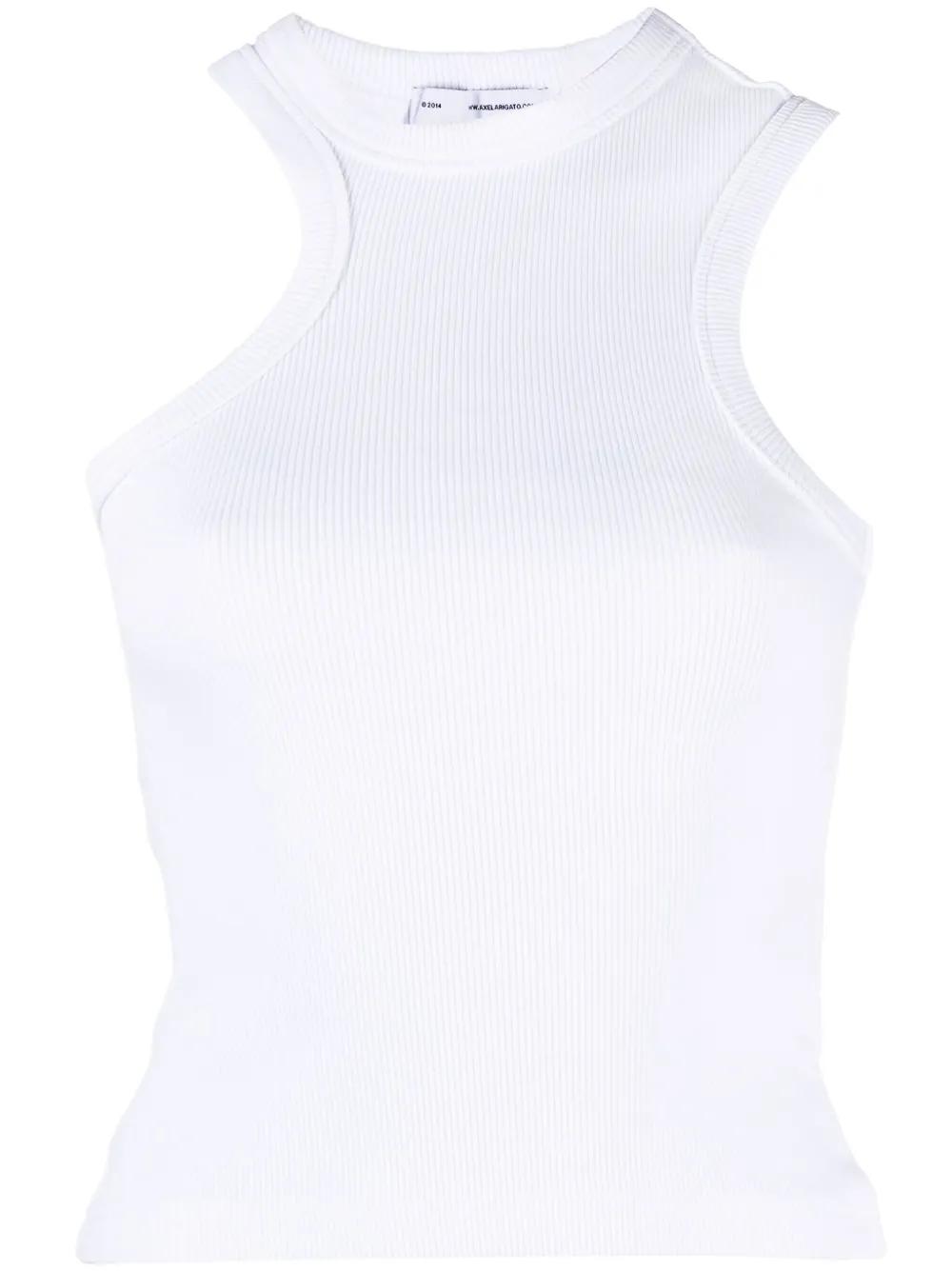 white stretch organic cotton cut-out detailing round neck sleeveless straight hem