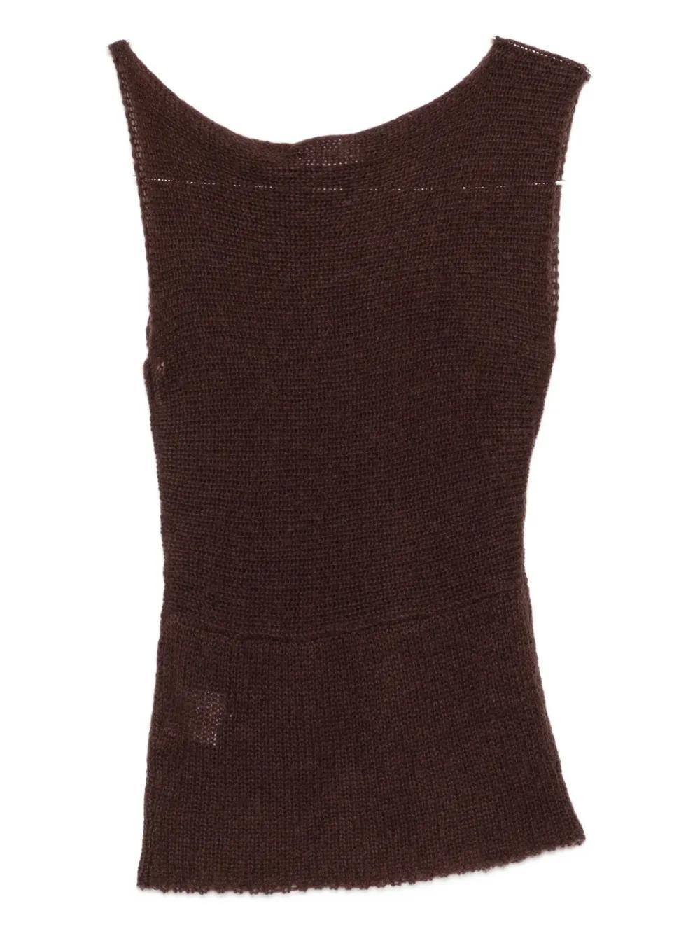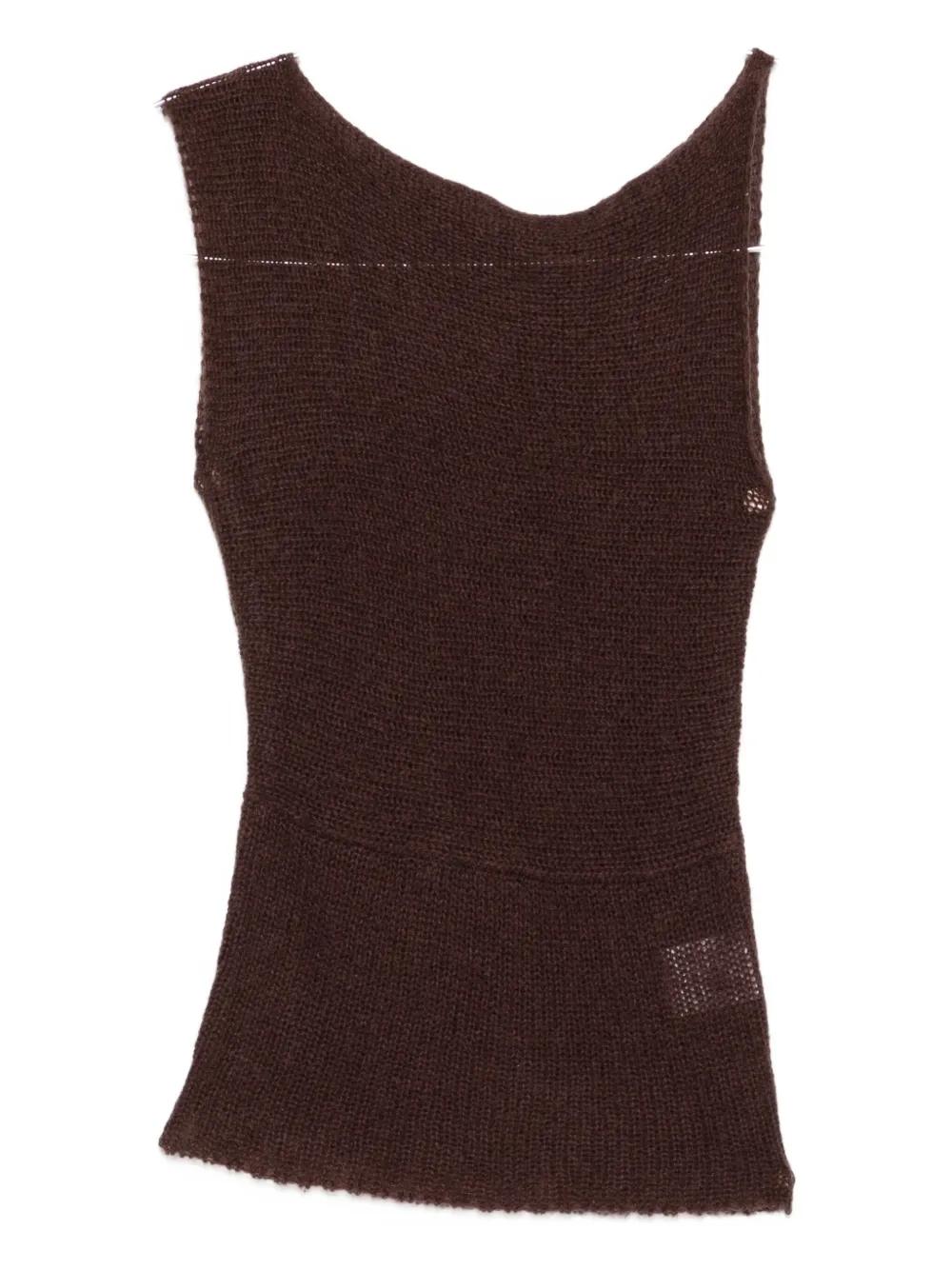 brown sleeveless asymmetric design