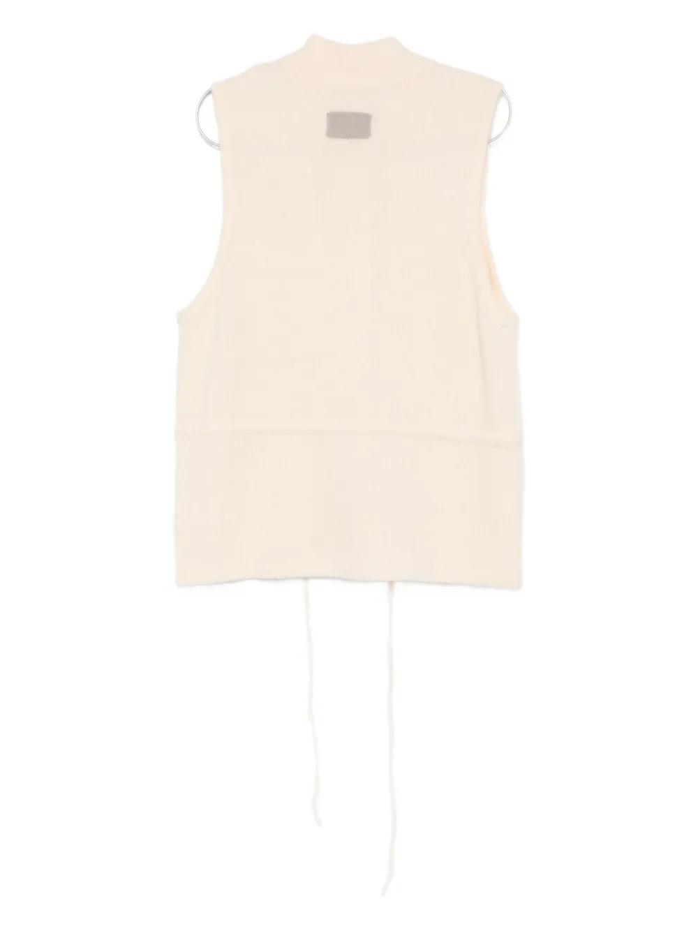 beige front button fastening chest flap pockets drawstring hem sleeveless