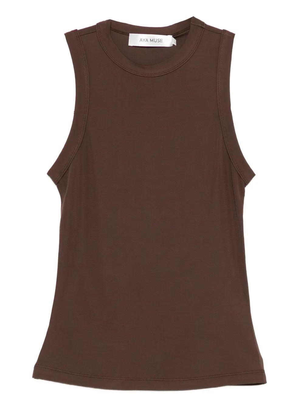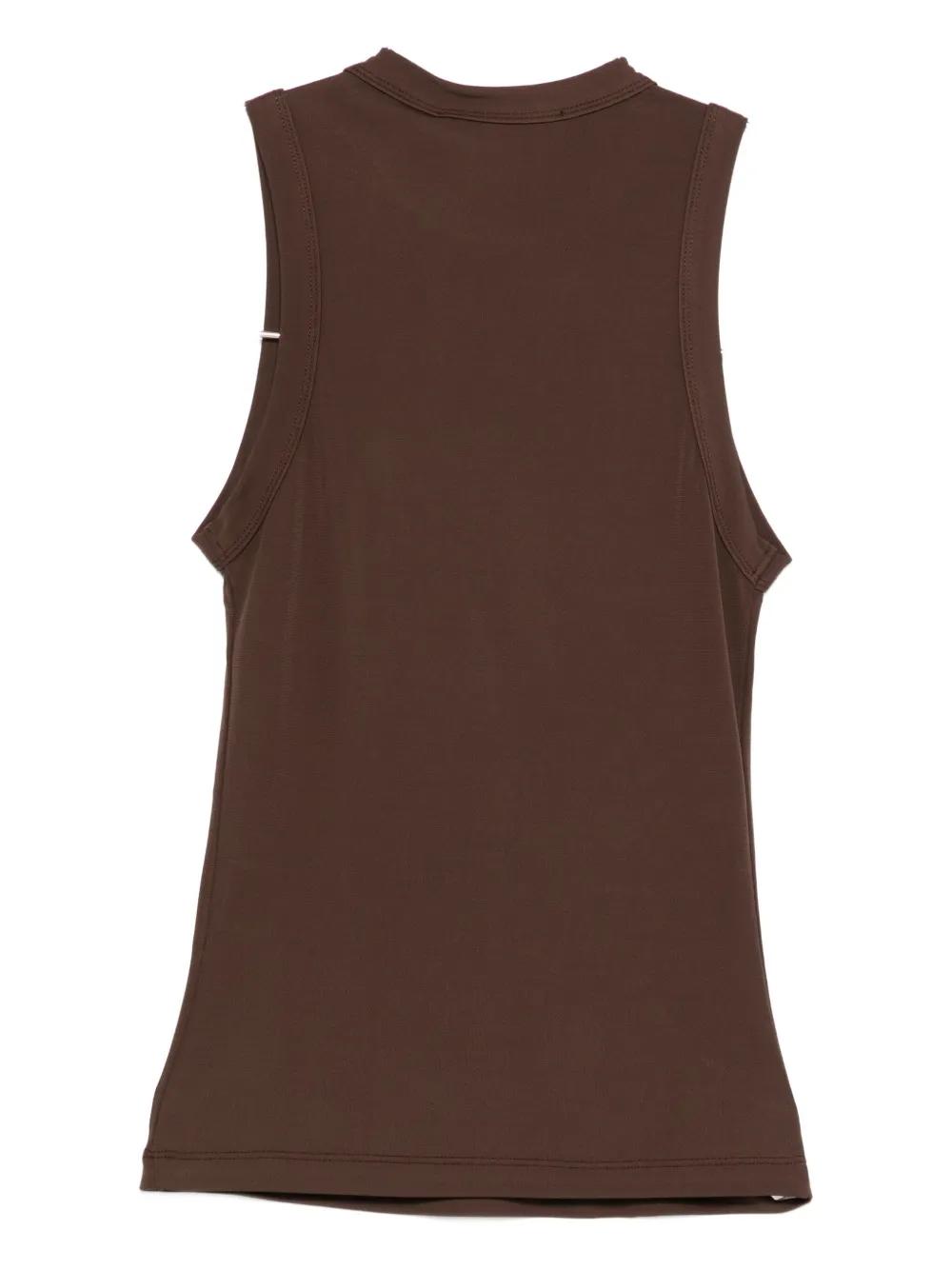 black V-neck wide shoulder straps appliqué logo sleeveless