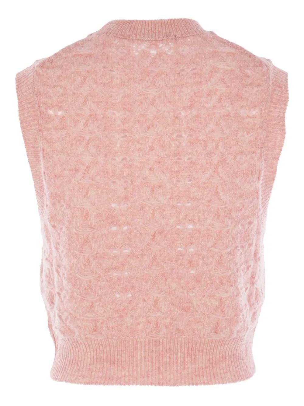 pink openwork knit ribbed hem ribbed round neck sleeveless