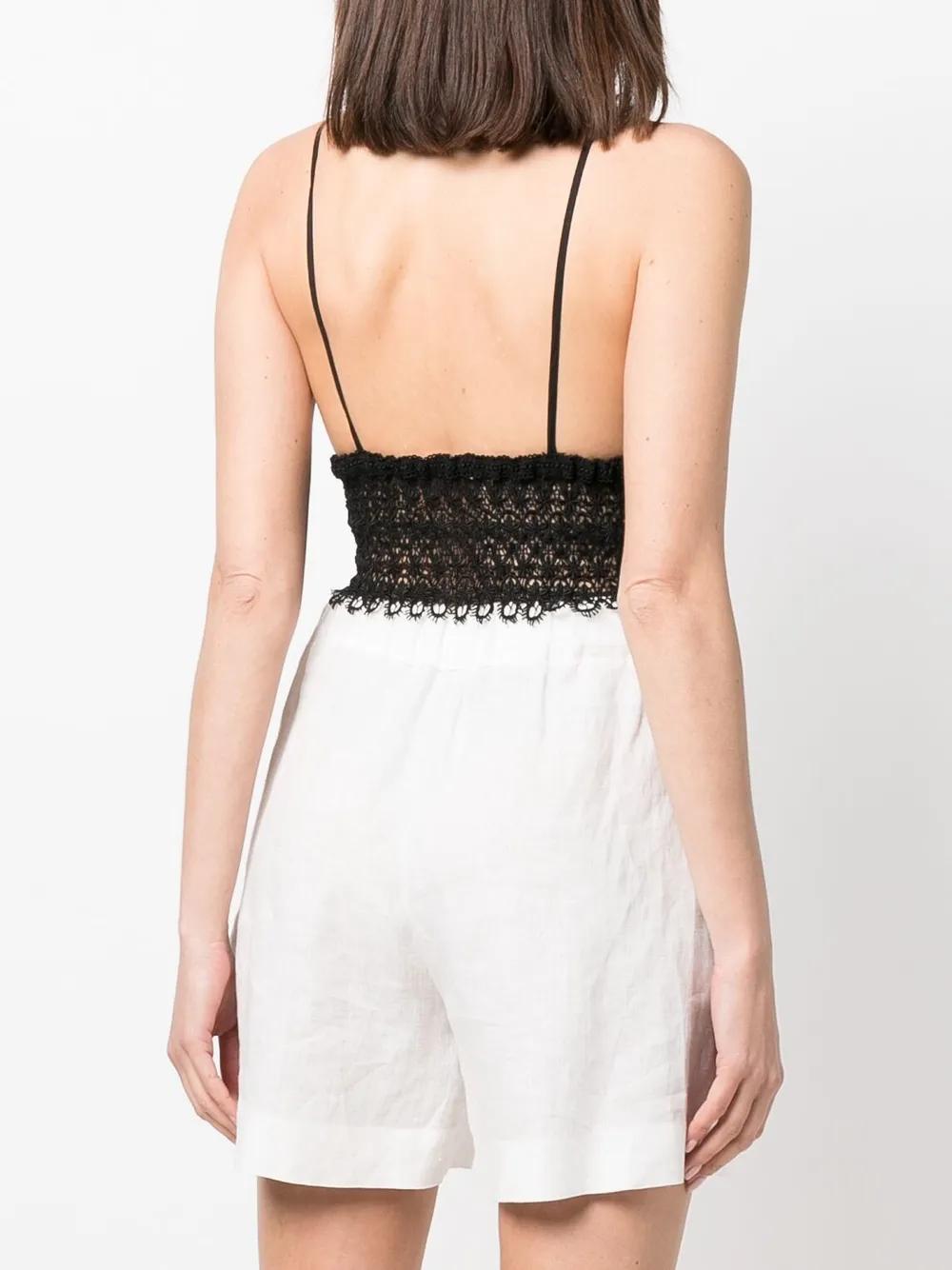 black cotton-blend guipure lace V-neck spaghetti straps low back cropped