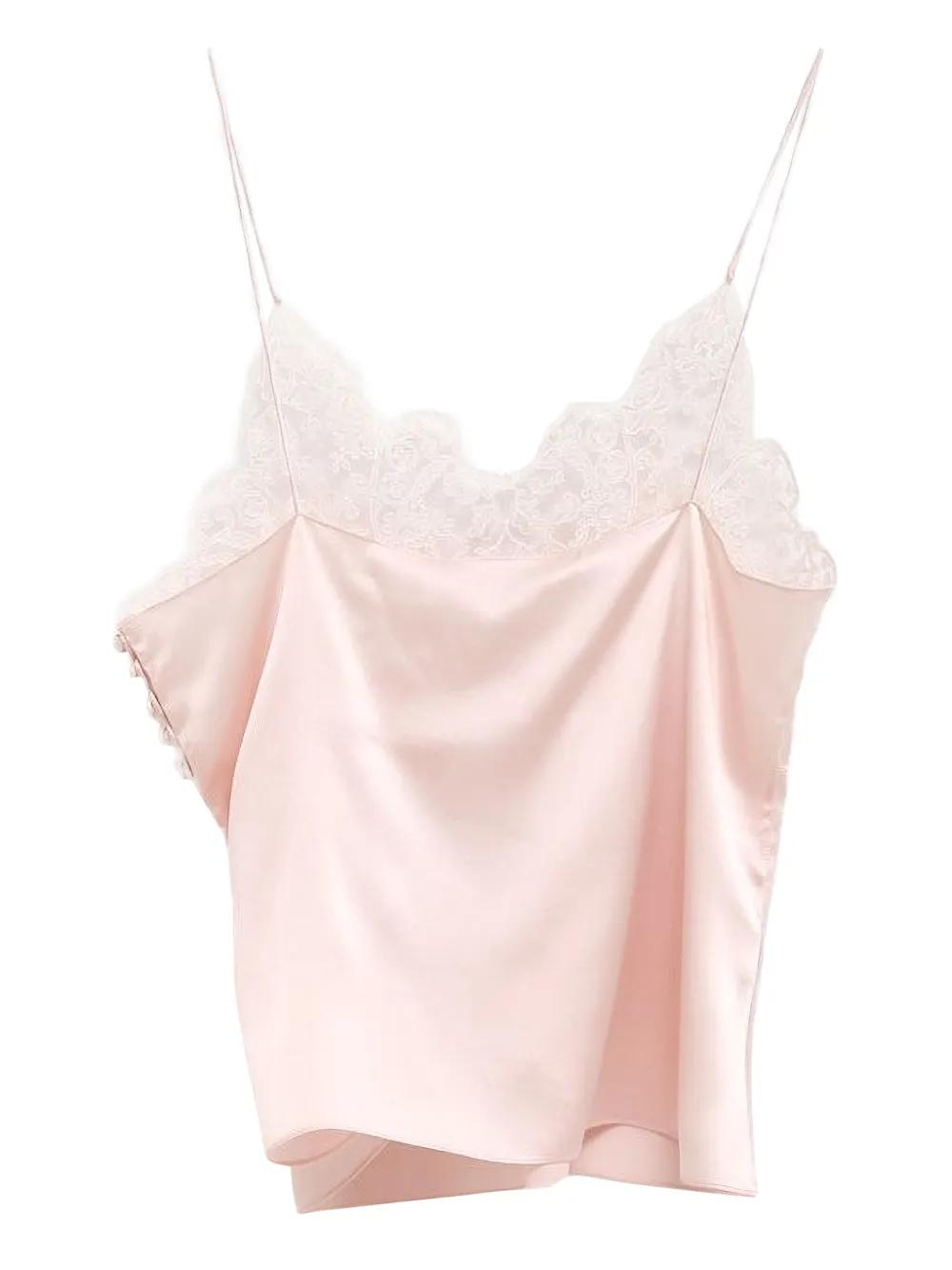 light pink silk lace detail spaghetti straps sleeveless straight hem tonal stitching