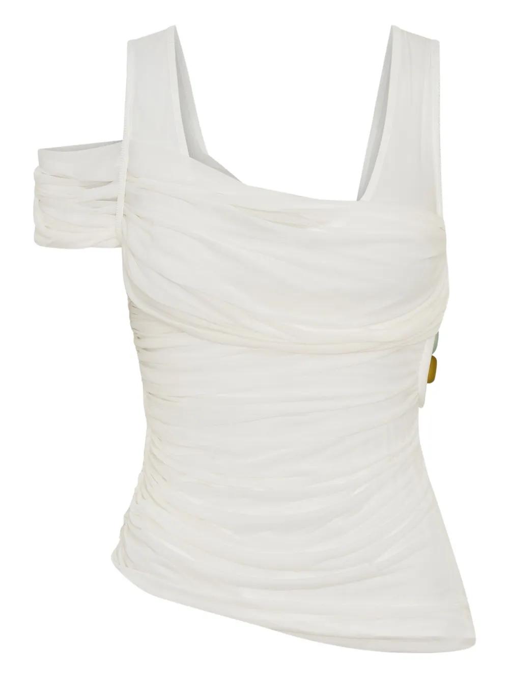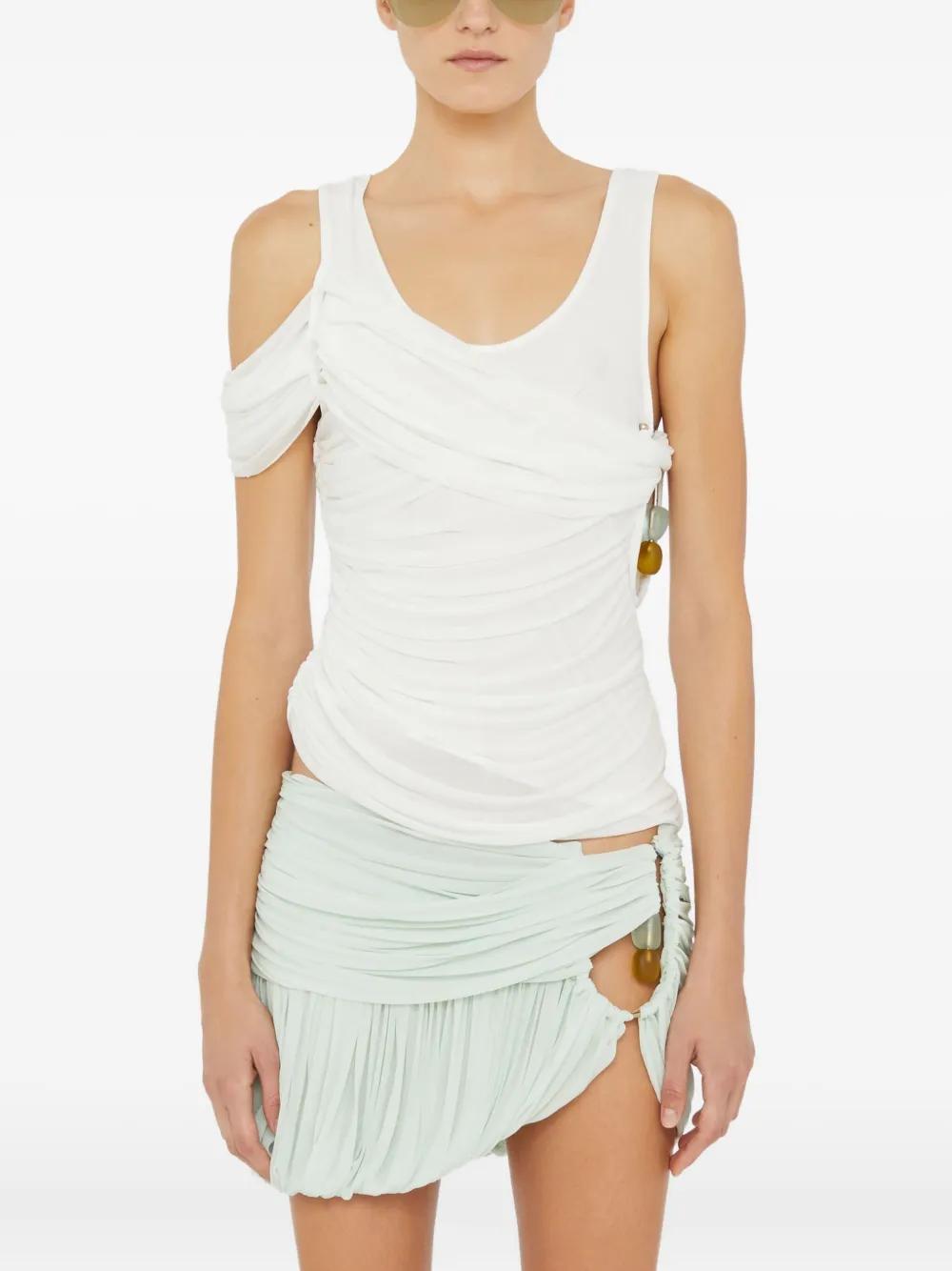 white draped effect sleeveless side cut-out Beach Glass embellishment