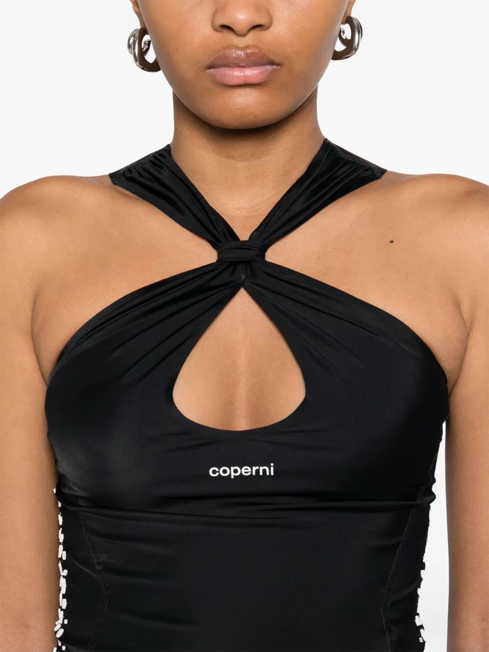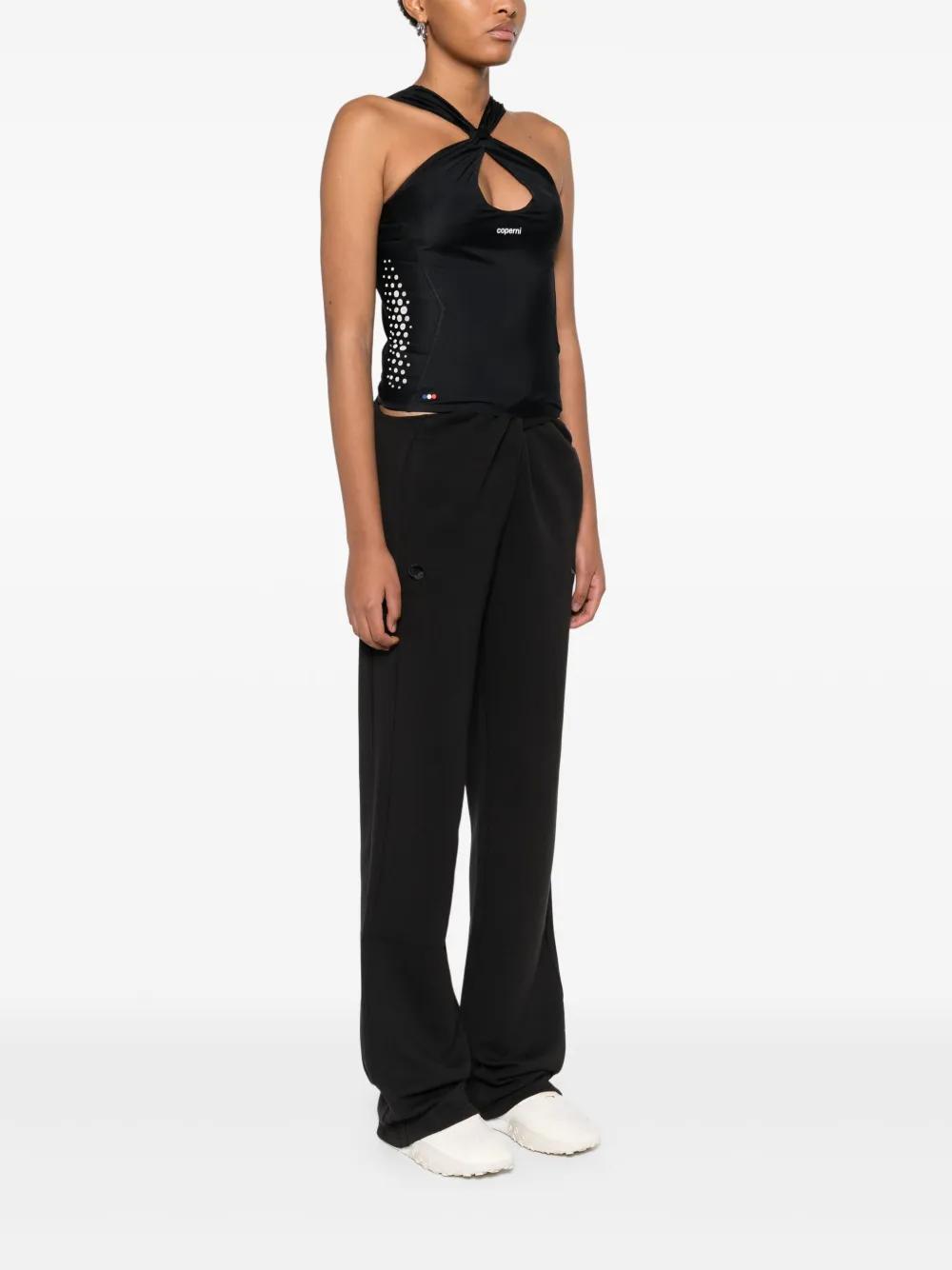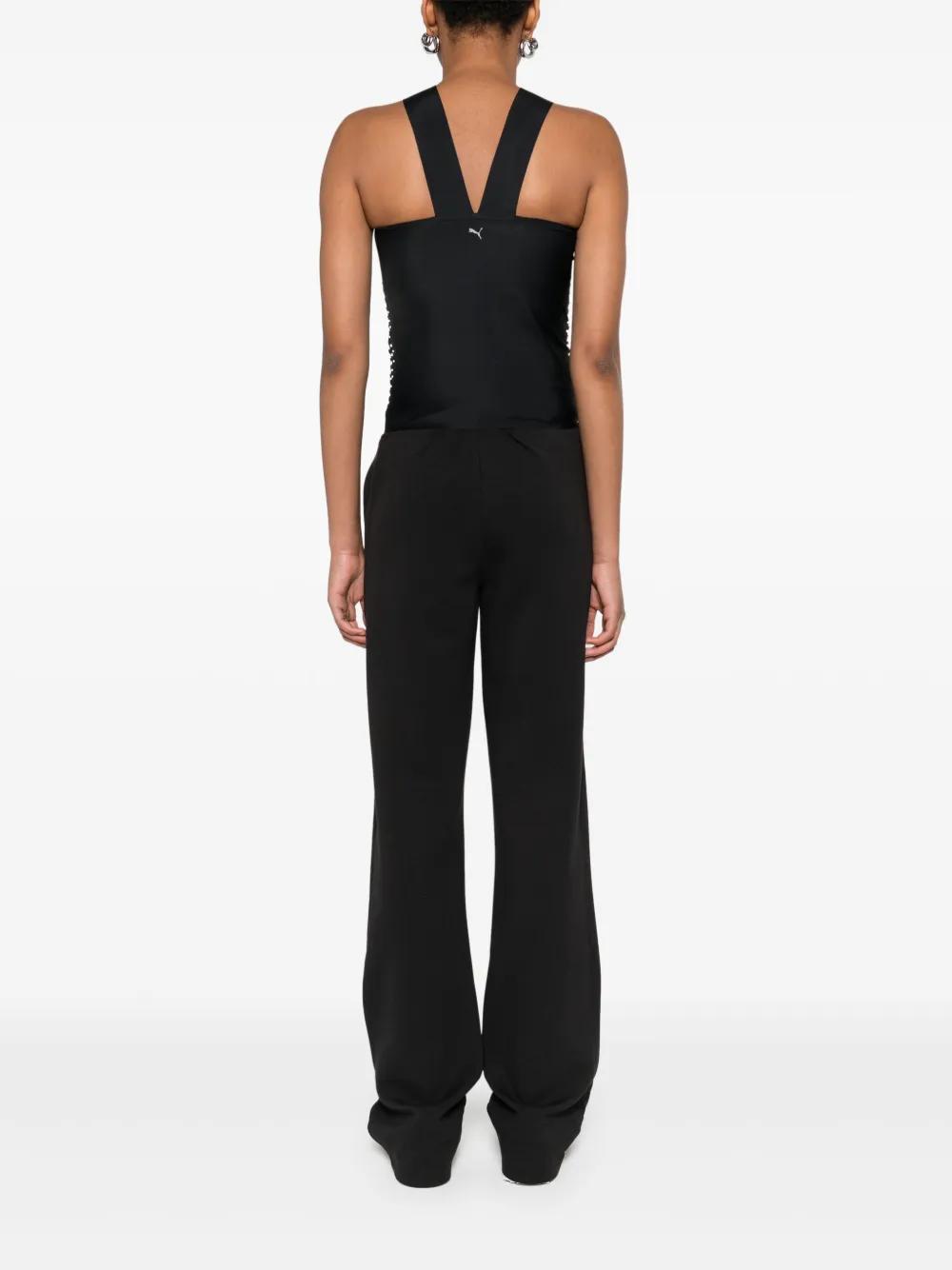 black cotton jersey texture open back U-neck logo patch to the front sleeveless straight hem